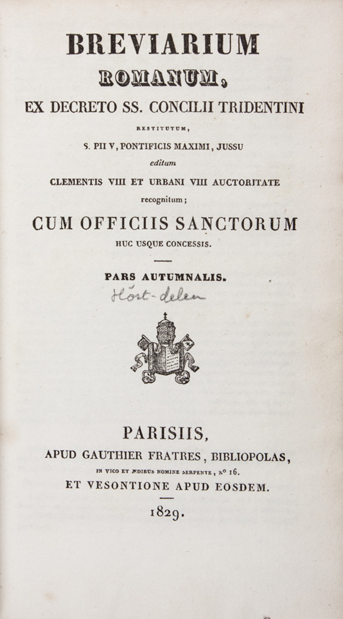 Breviarium Romanum.Parisiis: Apud Gauthier frates, 1829.4 volumi in-8°...