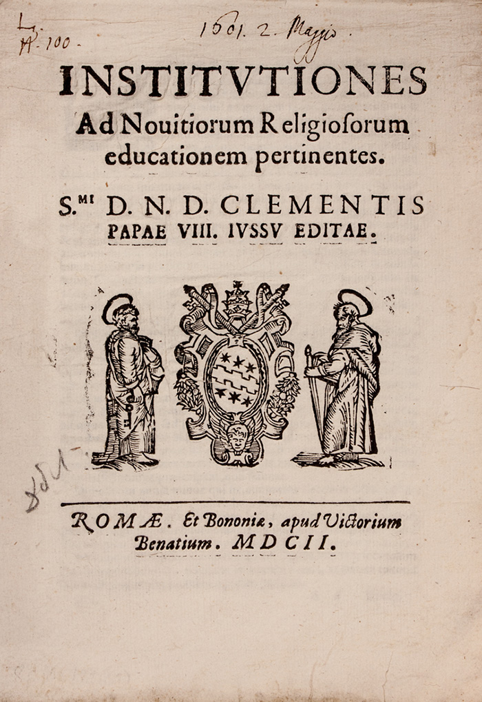 Institutiones ad novitiorum religiosorum educationem pertinentes S.mi D.N.D Clementis papae VIII iussu editae.