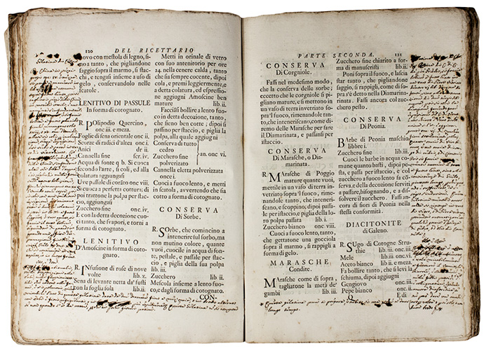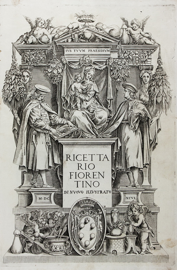 Buona edizione, successiva alla prima, di questo famoso ricettario realizzato dall'Arte dei Medici e Speziali di Firenze e dedicato a Cosimo de' Medici. Brunet V, 1279; Krivatsy, 9610; Gamba 842.