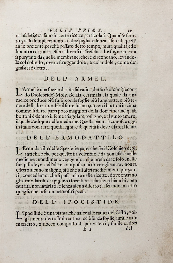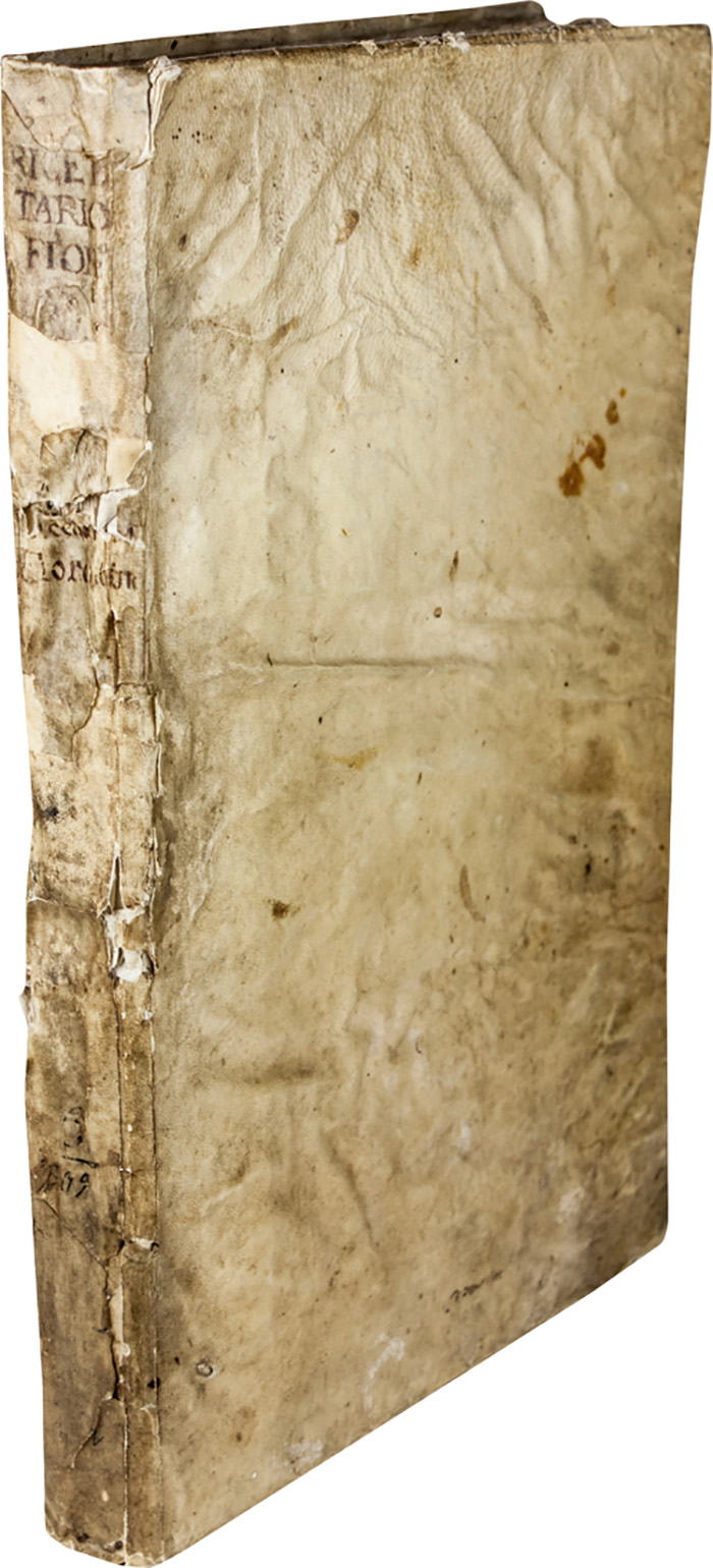 In-folio (mm 355x240). Pagine [8], 331, [1] con un bel frontespizio interamente inciso e 3 tavole calcografiche a piena pagina nel testo. Stemma mediceo in fine. Bell'esemplare in barbe, con rare arrossature sparse, un po' allentato internamente e con un esile lavoro di tarlo nel margine superiore di circa venti carte. Legatura coeva in pergamena rigida con titoli manoscritti al dorso. Lacune reintegrate con pergamena antica al dorso e, piccolissime, ai margini inferiori dei piatti. Fitte annotazioni di mano coeva ad alcune carte, nota di possesso cassata al colophon ed etichetta della Libreria Rappaport di Roma applicata al contropiatto.