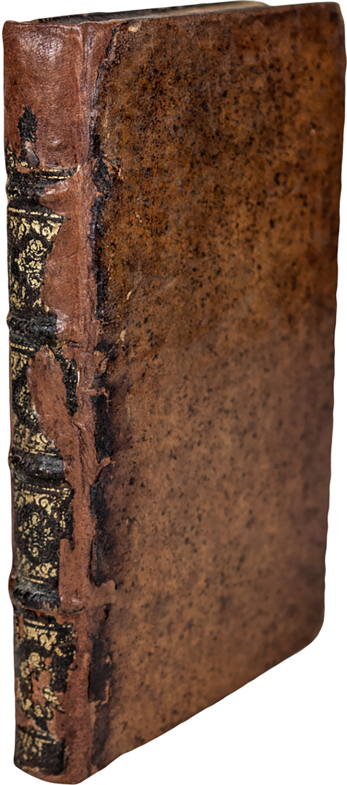In-8° (mm 152x92). Pagine 332, [3]. Testo greco con traduzione latina a fronte. Capilettera figurati xilografici. Ottima copia. Legatura settecentesca in pieno vitello con dorso ricostruito in pelle moderna e parte del dorso originale riapplicata.