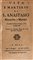In-12° (mm 136x77). Carte [12]. Brunito. Brossura in carta moderna. SI AGGIUNGE: Dialogo tra Gesù e la Samaritana. Lucca: s.e, s.d. (ma inizi del XIX secolo). In-8° (mm 170x115). Pagine 8. Brossura in carta azzurra. DI AGGIUNGE: Istoria esemplare del ricco Epulone in questa nuova impressione aggiuntevi di più molte Canzonette spirituali... Napoli: Presso Luigi Rossi, s.d. (ma inizi del XIX secolo). In-4° (mm 215x158). Pagine 8. Vignetta xilografica raffigurante il banchetto di Epulone al frontespizio. Brossura in carta azzurra. (3)