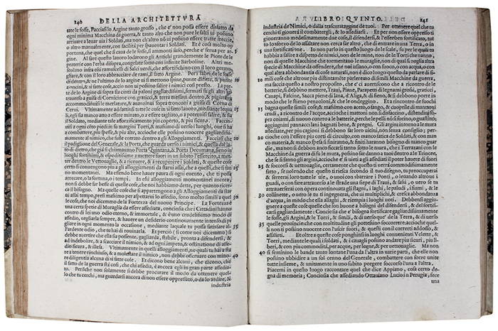 Seconda edizione della versione italiana curata dal Bartoli, rivista dal Traduttore e più completa della prima pubblicata a Firenze nel 1550; si veda lotto precedente. Nella nuova dedica a Cosimo il Bartoli spiega che questa edizione si era resa necessaria dalla grande richiesta dell'opera e dal fatto che gli esemplari della precedente erano ormai divenuti introvabili. Cfr. Gamba 1011: edizione «accresciuta del Trattato della Pittura dello stesso autore, trad. da Lodovico Domenichi [...]. Tanto il Poggiali, quanto l'editore della moderna ristampa [...] hanno giudicato che meriti ogni preferenza, considerandola la più compiuta»; Cicognara I, 376; Essling III, 676; Fowler 9.