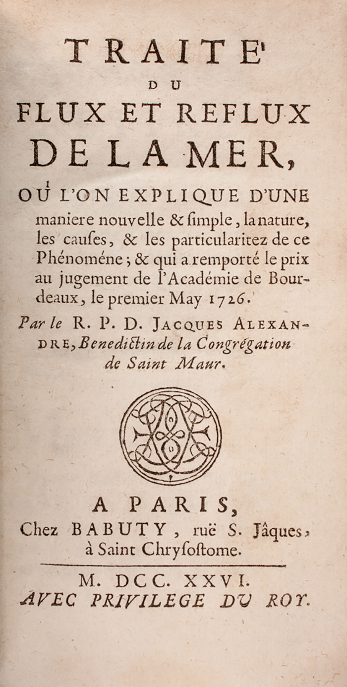 Alexandre Jacques, Traitè du flux et reflux de la mer.Paris: chez...