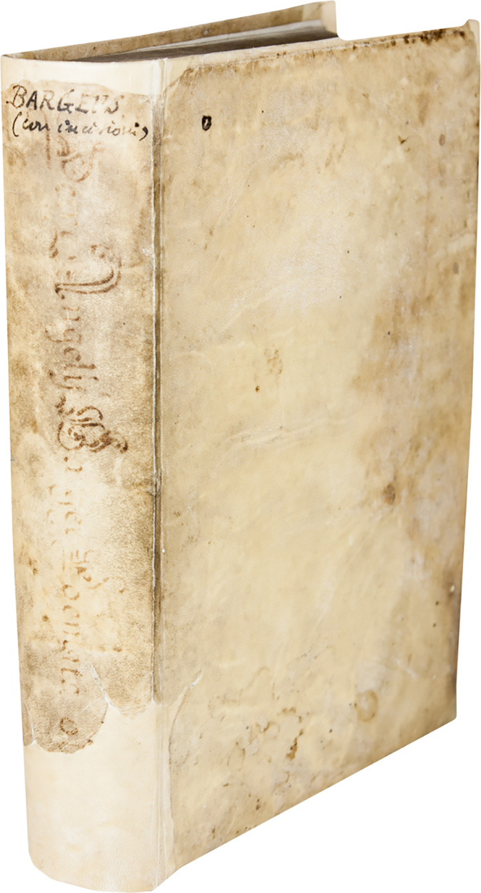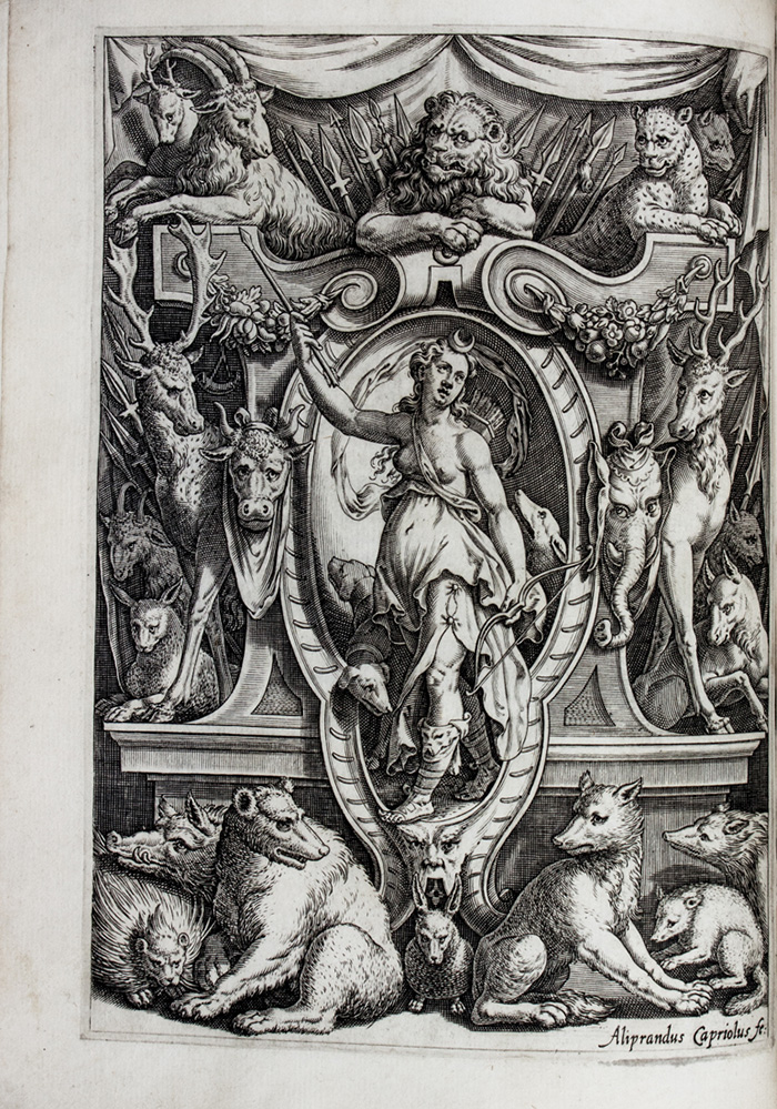 2 parti in 1 volume in-4° (mm 238x170). Pagine [14], 124 [i.e. 424] con 1 tavola allegorica incisa in rame fuori testo da Aliprando Caprioli; [16], 179, [1]. Due grandi vignette calcografiche ai frontespizi. Esemplare stampato su carta forte, con un'ampia ma lieve gora d'acqua nel margine esterno delle carte, più evidente in circa 20 fogli centrali, ma nel complesso buono. Legatura coeva in piena pergamena con titoli manoscritti al dorso con unghiature; punte e parte del dorso ricostruiti in pergamena moderna e sguardie rinnovate.