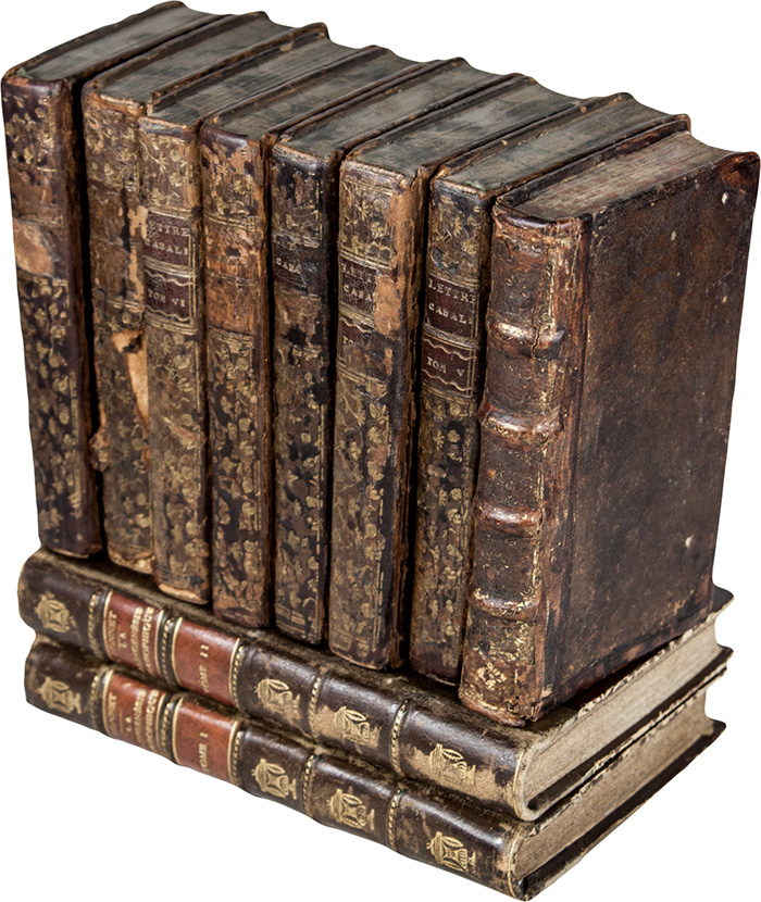 7 volumi in-8° (mm 140x80). Esemplare completo e in buono stato di conservazione, in legatura coeva in pieno vitello maculato. Difetti alle cerniere ed evidenti spellature ai piatti e ai dorsi. Due diversi timbri di collezione privata agli occhietti e una nota di possesso manoscritta. SI AGGIUNGE: Bonnet Charles, La palingénésie philosophique, ou Idées sur l'état passé et sur l'état futur des êtres vivans [...]. Tome premier (-second). A Munster: chez Philippe Henry Perrenon, 1770. 2 volumi in-8° (mm 170x95). Pagine XXIV, 368; [10], 388. Bruniture e fioriture sparse, a volte intense, e una minuscola mancanza nell'angolo inferiore di circa 50 carte. Legatura coeva in mezza pelle con difetti. Ex-libris R.B. Schmitz al verso del frontespizio e Dorbon-Ainé al contropiatto posteriore. SI AGGIUNGE: La Belliere Claude de, La physionomie raisonnée... A Paris: chez Edme Couterot, 1664. In-12° (mm 130x70). Pagine [24], 235, [5]. Lievi arrossature sparse. Legatura coeva in pieno vitello, con restauri al dorso e alle cerniere. Ex-libris Garrugues applicato al contropiatto e altra nota di possesso manoscritta. (10)
