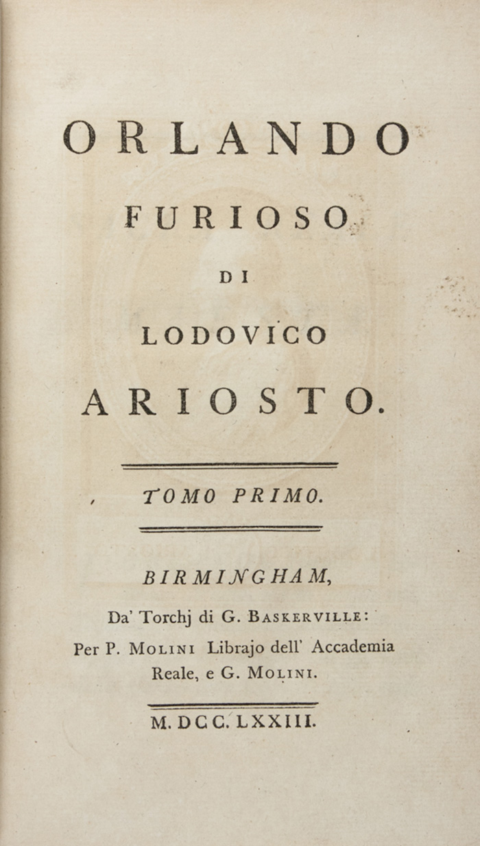 Birmingham: Da' Torchj di G. Baskerville: Per P. Molini Librajo dell'Accademia Reale, e G. Molini, 1773.