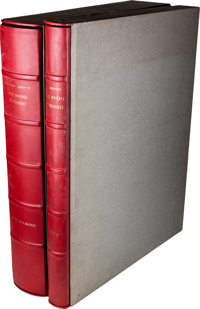 2 volumi in-folio (mm 418x330). Pagine XVIII, [2], 340, [8]; [8], con 158 tavole a colori numerate di Fabrizio Clerici. Testatine e finalini in rosso. In cartella editoriale di carta con custodia in pelle rossa. Ottime condizioni. (2)
