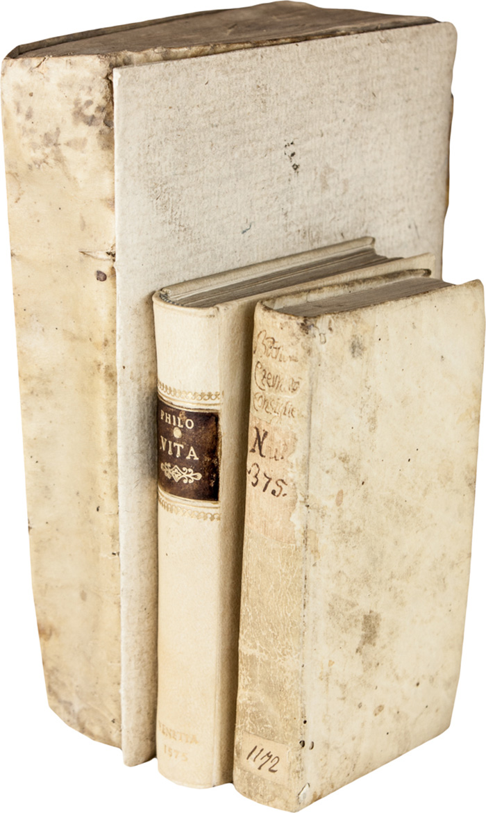In-12° (mm 150x80). Pagine [16], 331, [1]. Antiporta calcografico. Piccolo lavoro di tarlo marginale all'antiporta, frontespizio e prima carta. Minime fioriture, ma buona copia. Legatura in piena pergamena floscia con macchie ai piatti e piccoli forellini di tarlo. Titoli manoscritti al dorso. Nota manoscritta al contropiatto anteriore. SI AGGIUNGE: Philo Hebraesus, Josephi Patriarchae vita. Venetiis: apud Bologninum Zalterium, 1575. In-8° (mm 147x100). Carte 174, [2]. Copia un po' corta di margini. Fioriture sparse, ma buon esemplare. Legatura successiva in piena pergamena rigida. Tassello con titoli al dorso. SI AGGIUNGE: Relatione della vittoria havuta dalli cattolici contro li protestanti d'Alemagna, & Svedesi... In Milano: per Gio. Battista Malatesta, [1634]. In-4° (mm 220x155). Pagine [4], 13, [1]. Forellini e lavori di tarlo anche nel testo. Minime fioriture. Legatura successiva in cartone con lievi difetti. SI AGGIUNGE: Giliberti Vincenzo, Il torchio del purgatorio fabbricato da D. Vincenzio Giliberto cherico regolare. In Firenze: appresso i Giunti, 1620. In-4° (mm 220x155). Pagine [8], 448, [60]. Marca xilografica al frontespizio e piccola mancanza marginale. Capilettera, testatine e finalini incisi in legno. Gore d'acqua marginali e qualche fioritura. Legatura coeva in piena pergamena floscia con lacerti di legacci e segni di usura. (4)