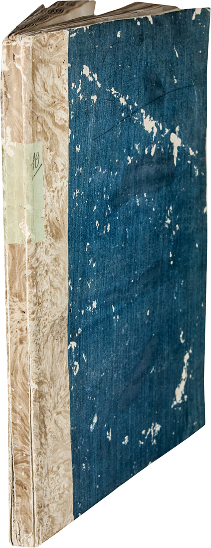 In-folio (mm 310x205). Carte XCIIII [i.e. XCV], 1 bianca. Errori nella numerazione delle carte ma esemplare completo anche dell'ultima bianca. Testo per capilettera con letterine-guida. Ottimo esemplare ad ampi margini, con solo alcuni forellini di tarlo e lievi gore marginali al primo quaderno e a poche carte centrali. Legatura settecentesca in cartonato rivestito in carta marmorizzata al dorso e colorata ia piatti, con lacune e abrasioni, oltre a difetti al dorso. Nota di possesso a carta A2r, molte annotazioni della medesima mano cinquecentesca al testo, una correzione di mano di Cola Bruno a carta 42r.