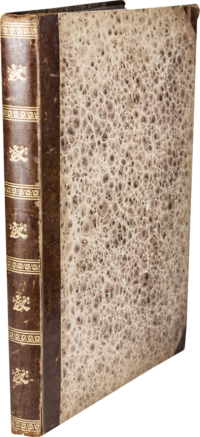 In-4° (mm 332x250). Pagine [4], 259, [1] con 2 pagine ripiegate più volte con l'immagine di un flauto. Opera totalmente incisa con evidenti bruniture, ma in buono stato di conservazione. Legatura coeva in mezzo marocchino con punte stanche e piatti ricoperti da carta marmorizzata un poco lisa alle cerniere. Dorso con fregi dorati.