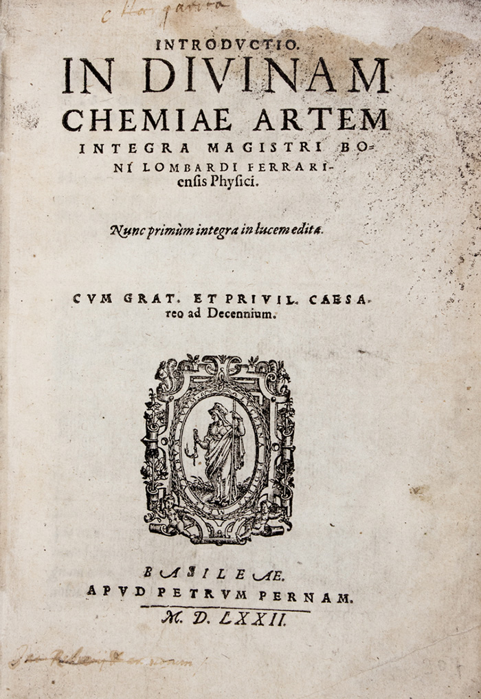 Terza edizione, ma prima completa; come si legge nella Prefatio a cura di Michael Toxites: «Bono Lombardo [...] huius artis Introductionem ante ducentos quadraginta duos annos in Istria composuit: laboremque suum Margaritam preciosam appellavit. Hunc authorem Ianus Lacinus monachus Calaber dilaceravit, ac re non intellecta in compendium redegit, dimidia operis parte omissa». La prima edizione di questa testo in cui l'Autore difende l'Alchimia dagli attacchi del suo tempo, ad opera del Lacinus, fu stampata dai Manuzio nel 1546 ed è l'unica censita nei repertori, eccetto Ferguson I, 112; II, 3: «It claims therefore to be more complete than the aldine edition of 1546»
