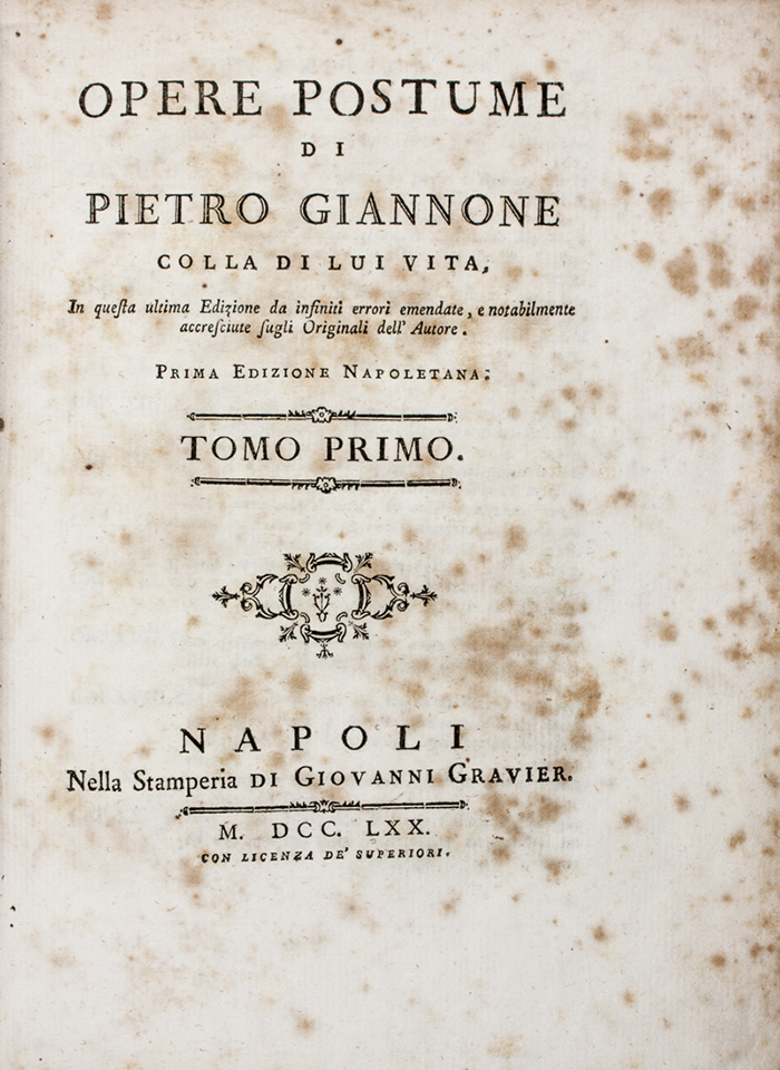 Napoli: nella Stamperia di Giovanni Gravier, 1769.