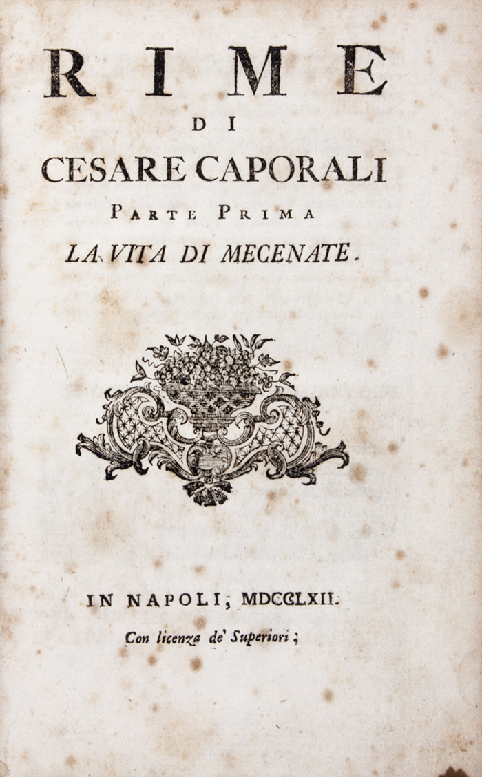 Caporali Cesare, Rime...In Napoli: S.e., 1762.In-8° (mm 185x115)....