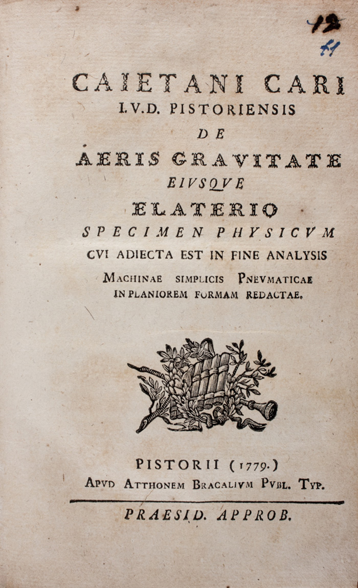 Cari Gaetano, De aeris gravitate eiusque elaterio specimen physicum....