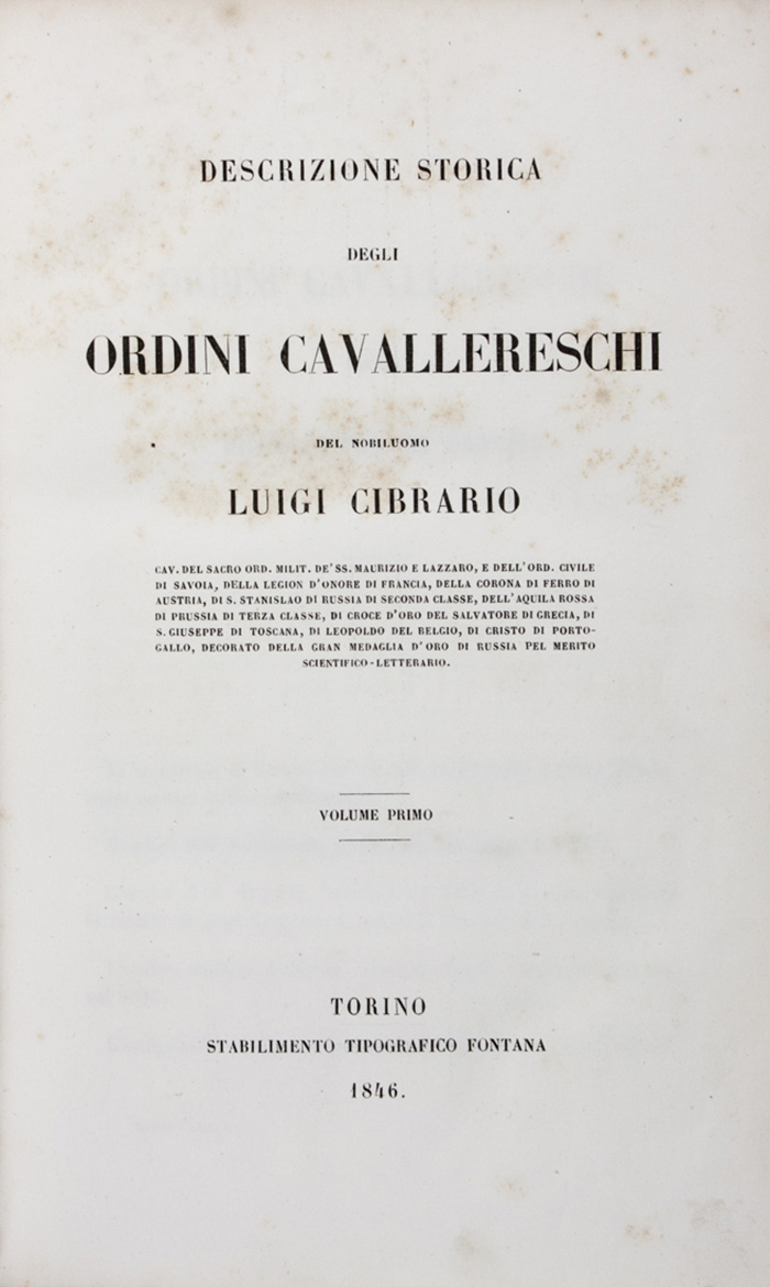 Cibrario Luigi, Descrizione storica degli ordini cavallereschi [...]. Volume primo (-secondo).