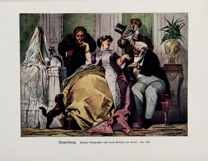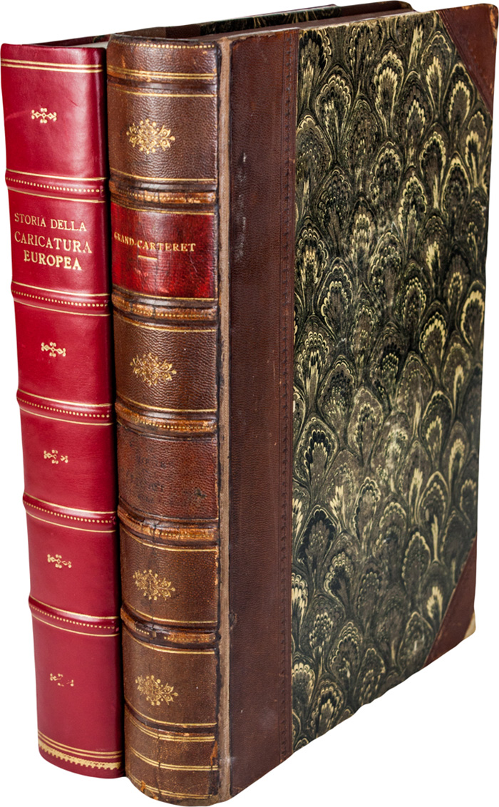 4 volumi in-4° (mm 270x210). Pagine IX, [5], 348; 355-711; VIII, [5], 319, [1]; 303; [1] con più di 1000 illustrazioni complessive. Ottimo stato di conservazione. Legatura editoriale in tela con titoli e illustrazione al piatto anteriore con lievi macchioline. Conservate le sovraccoperte dei primi due volumi seppur con strappi e qualche mancanza. SI AGGIUNGE: Fuchs Eduard, Illustrierte Sittengenschichte vom mittelalter bis zur gegenwart. Munchen: Albert Langen, 1909. 6 volumi in-4° (mm 270x195). Pagine X, [1], 500; X, [2], 484; X, [2], 496; IX, [3], 336; IX, [3], 328; X, [2], 341, [3] con numerosissime illustrazioni anche a colori. Pecette di rinforzo a diverse tavole a doppia pagina. Volume 3 leggermente allentato. Tavola a doppia pagina slegata ad uno dei volumi supplementari. Piega alle prime carte e piccole gore marginali al terzo volume supplementare, altrimenti ottime condizioni. Legatura in tela editoriale con belle illustrazioni ai piatti anteriori dei primi tre volumi. Dorso con titoli in oro. SI AGGIUNGE: Id., Die Frau in der Karikatur. Munche: Albert Langen, 1928. Grand-Carteret John, Le Décoleté et le retroussé. Paris: Bernard, [1902]. Id., Les moeurs et la caricature en Allemagne en Autriche en Suisse. Paris: Westhausser, 1885. Gec (Enrico Gianeri), Storia della caricatura europea. Firenze: Vallecchi, 1967. (14)