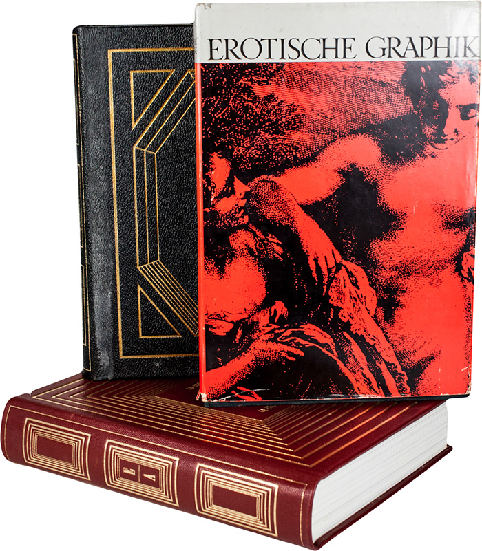 1 opera in 2 volumi in-8° carré (mm 180x180). Pagine 568; 421. Copie in ottimo stato di conservazione. Legature editoriali in seta con scritte e titoli oro e pastello. Conservate le sovraccoperte illustrate. SI AGGIUNGE: Romi, La conquete du Nu. Paris: Editions de Paris, 1957. Zwang Gèrard, Le sexe de la femme. Paris: Le Jeune Parque, 1967. Id., Die Erotik Der Frau (Die Welt Des Eros). Basel: Verlag Kurt Desch, 1968. Lo Duca, Erotique de l'Art. Paris: La Jeune Parque, 1966. Kuntz Edwin, Erotische Graphik von der Antike bis heute. Bonn: Hieronimi, 1966. Etiemble, Cina amore ed arte. Ginevra: Edizioni Nagel, 1976. Von Bayros F., Il giardino di Afrodite. Milano: SugarCo, 1984. Dijkstra Bram, Idoli di perversità la donna nell'immaginario artistico filosofico letterario e scientifico tra otto e novecento. Milano: Garzanti, 1988. AA.VV., Eros nella letteratura francese (4 volumi). Milano: Luinetti, 1968. AA.VV., Collana Il Nudo: Israele, Borneo, Tahiti (3 volumi). Bologna: Edizione Fotodarte, 1969. AA.VV., The Banana. Milano: Colmen, 1971. AA.VV., The Pall Mall Gazette. Milano: Colmen, 1971. (19)