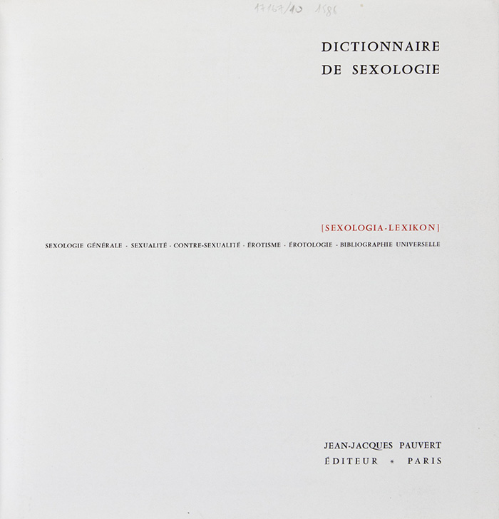 Pauvert Jean Jeacques, Dictionnaire de Sexologie.Paris: Jean Jeacque...