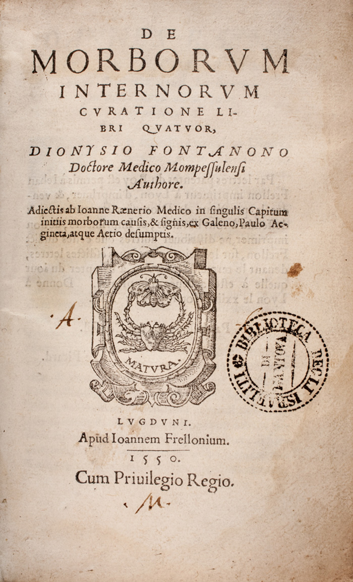 I OPERA: Seconda edizione, di un anno successiva alla prima. Durling 1599; Wellcome I, 2350a. II OPERA: Edizione di inizio '600 del De Morborum, opera che raccoglie le lezioni del dottor Fontanon e che fu più volte ristampata.