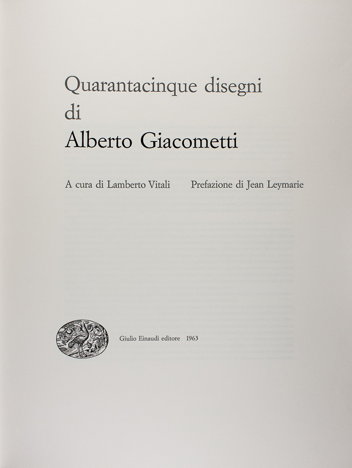 Giacometti Alberto, Quarantacinque disegni di Alberto Giacometti.Torino:...