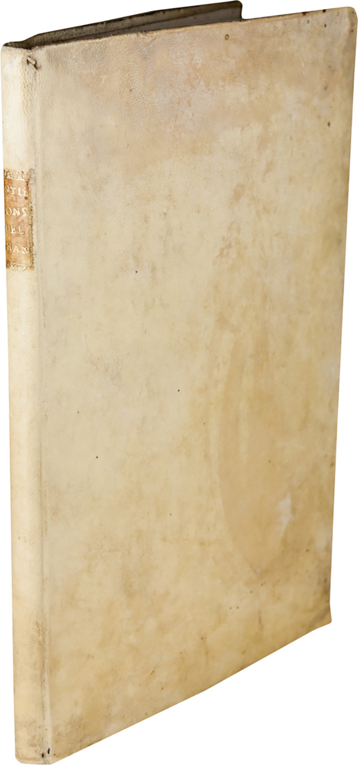 In-folio piccolo (mm 270x185). Pagine [12], 84 con 7 carte di tavole calcografiche ripiegate in fine. Marca calcografica al frontespizio, testatine e capilettera incisi in legno e in rame. Bella copia, con bruniture e qualche alone di umidità. Legatura coeva in pergamena rigida con titoli impressi in oro al dorso su falso tassello.