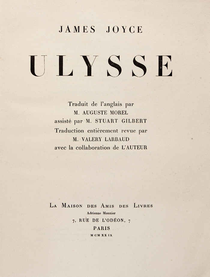 Joyce James, Ulysse. Traduit de l'anglais par Auguste Morel...Paris: La...