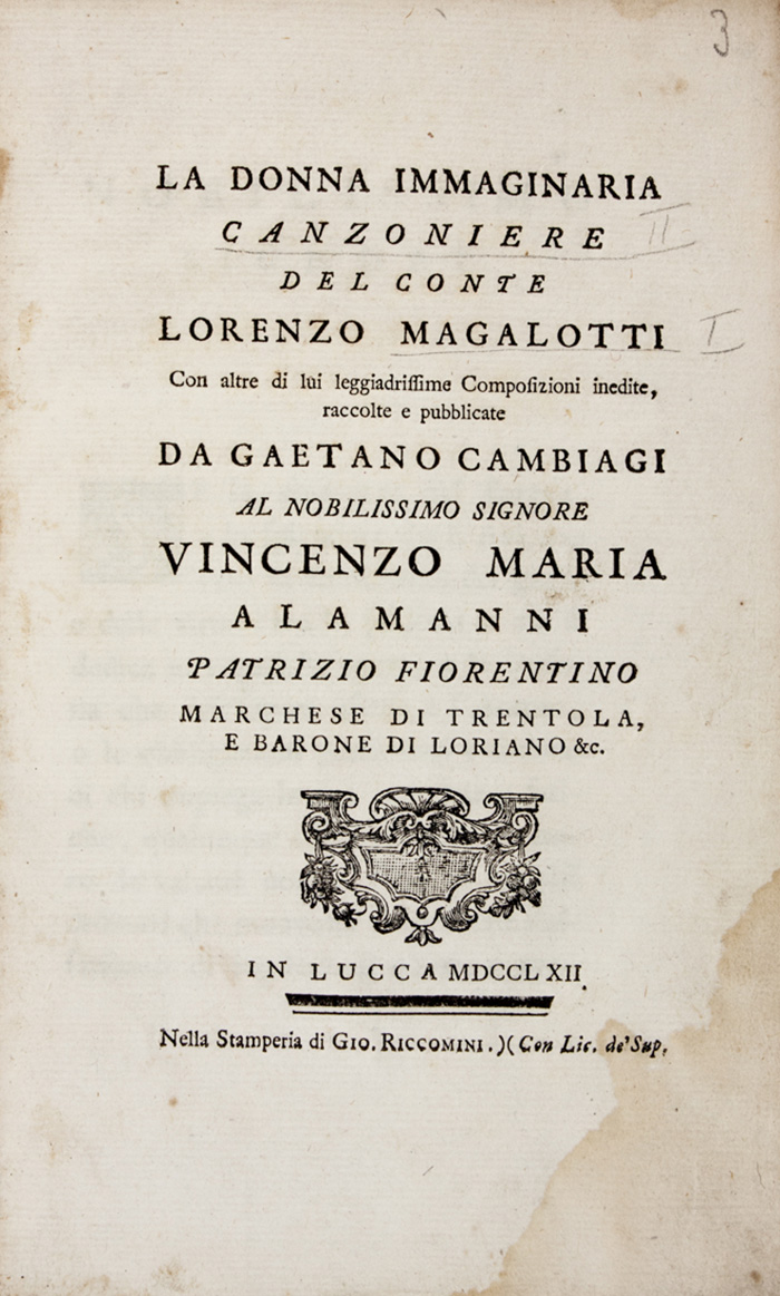 Magalotti Lorenzo, La donna immaginaria canzoniere... In Lucca: Nella...