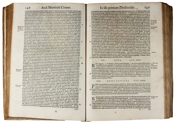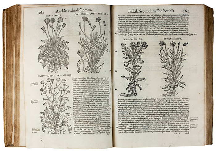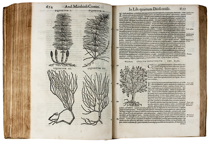 Bella edizione in latino di questo celeberrimo erbario stampata dal Valgrisi, adorna di oltre mille illustrazioni nel testo, incluse oltre 300 figure qui pubblicate per la prima volta. Cfr. Adams D-673; Durling 3013; Nissen, BBI 1305; Pritzel 5985; Wellcome 4145.