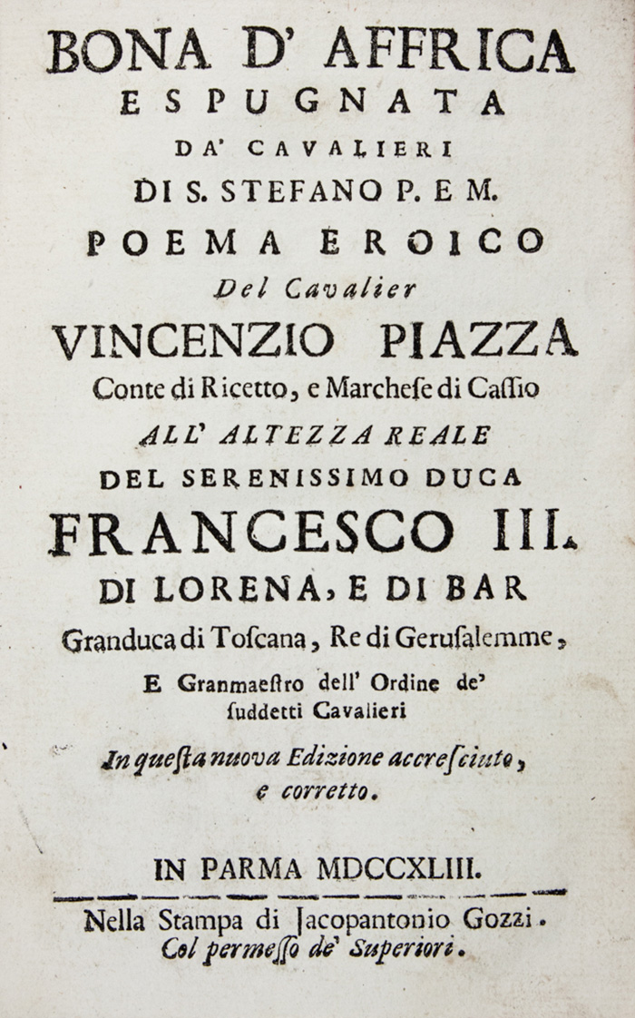 Piazza Vincenzo, Bona d'Affrica espugnata da' Cavalieri di S. Stefano P. e M. Poema eroico...