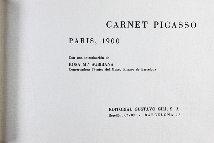 Picasso Pablo, Carnet Picasso. Paris, 1900. Con una introducción de Rosa M.a Subirana, conservadora técnica del Museo Picasso de Barcelona.