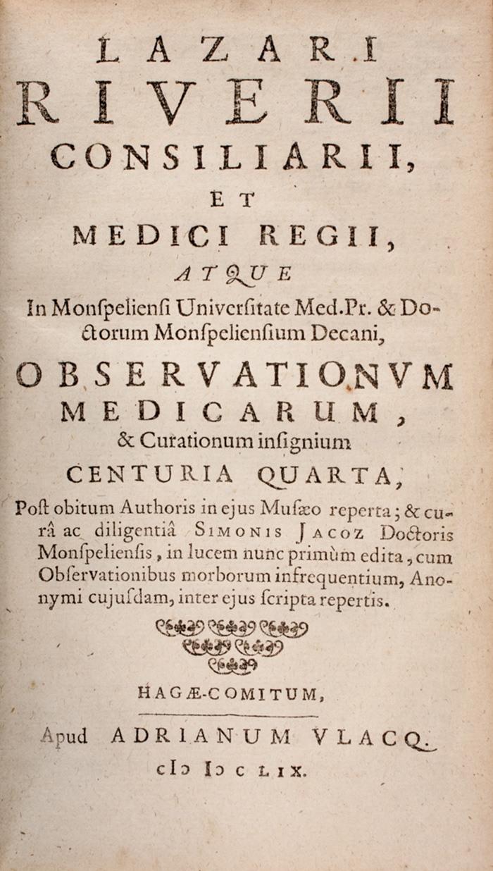 Riviere Lazare, Observationum Medicarum, & Curationum insignium centuria...