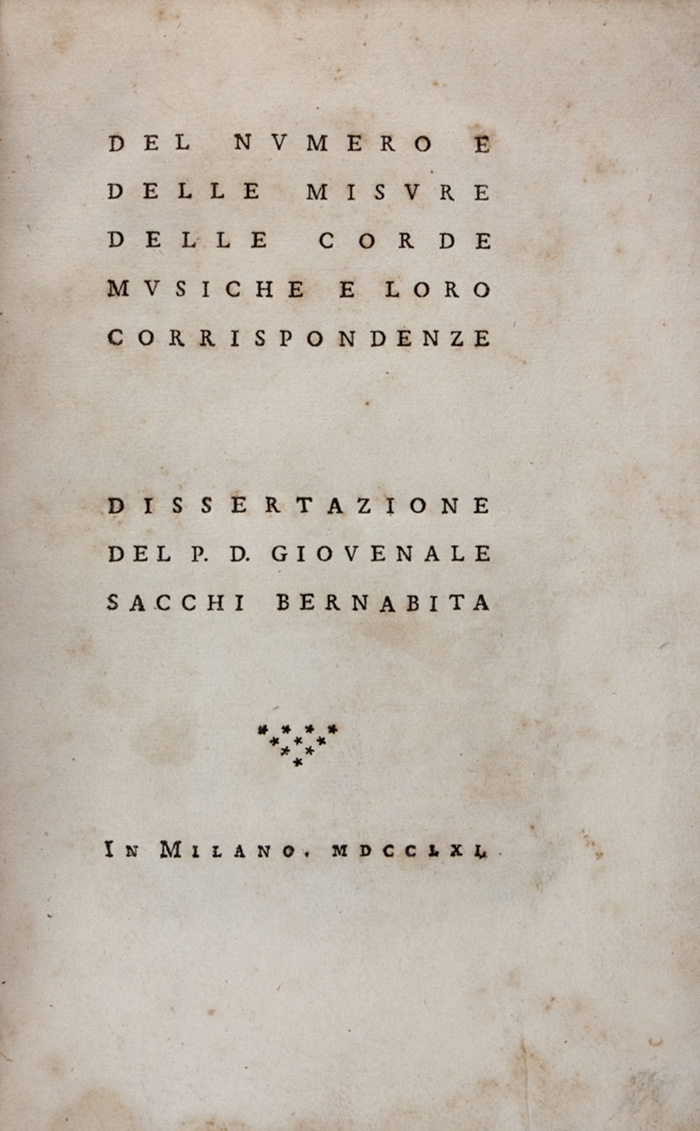 Sacchi GiovenaleDel numero e delle misure delle corde musiche e loro corrispondenze.