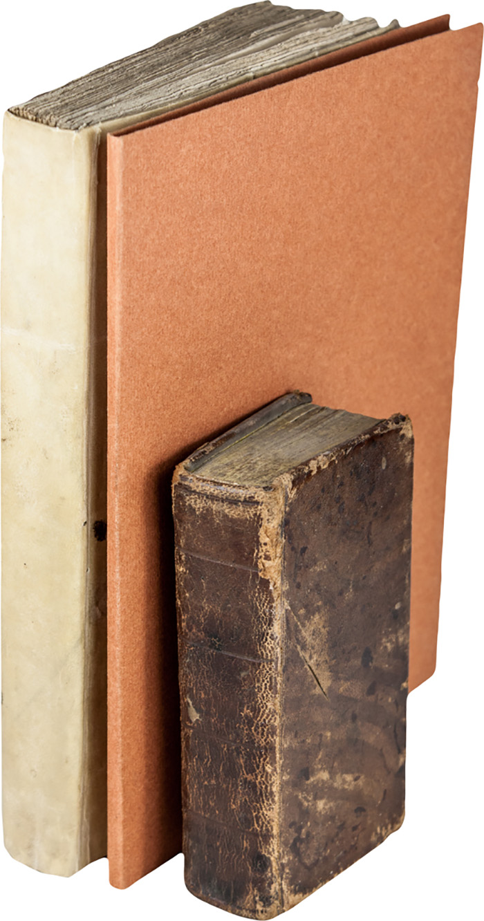 In-12° (mm 130x70). Pagine [6], 3-407, [3], 409-620, [2], 59, [1]. Antiporta calcografico. Frontespizio con mancanza al margine inferiore. Capilettera, testatine e finalini incisi in legno. Minime fioriture, ma buona copia. Legatura coeva in piena pelle con abrasioni ai piatti e alle cerniere. SI AGGIUNGE: Maffei Traiano, Discorso toccante i pregi della virtude... In Roma: per Lodovico Grignani, 1647. In-4° (mm 220x155). Pagine XXXIX, [1]. Esemplare molto rifilato e brunito. Legatura moderna in cartone. SI AGGIUNGE: Jannelli Cataldo, Sulla natura e necessita della scienza delle cose... Napoli: presso Porcelli, 1817. In-8° grande (mm 230x150). Pagine XX, 240. Lavoro di tarlo da pagina 223 fino in fondo. Gora d'acqua alle prime carte. Legatura coeva in pergamena floscia. In seguito è stata aggiunta una seconda pergamena che funge da restauro per dorso e metà dei piatti. Note manoscritte ai piatti. (3)