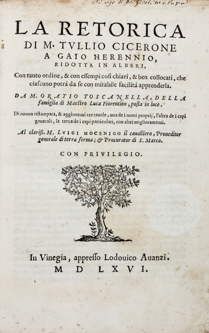 Toscanella Orazio, La retorica di M. Tullio Cicerone a Gaio Herennio, ridotta in alberi,,,
