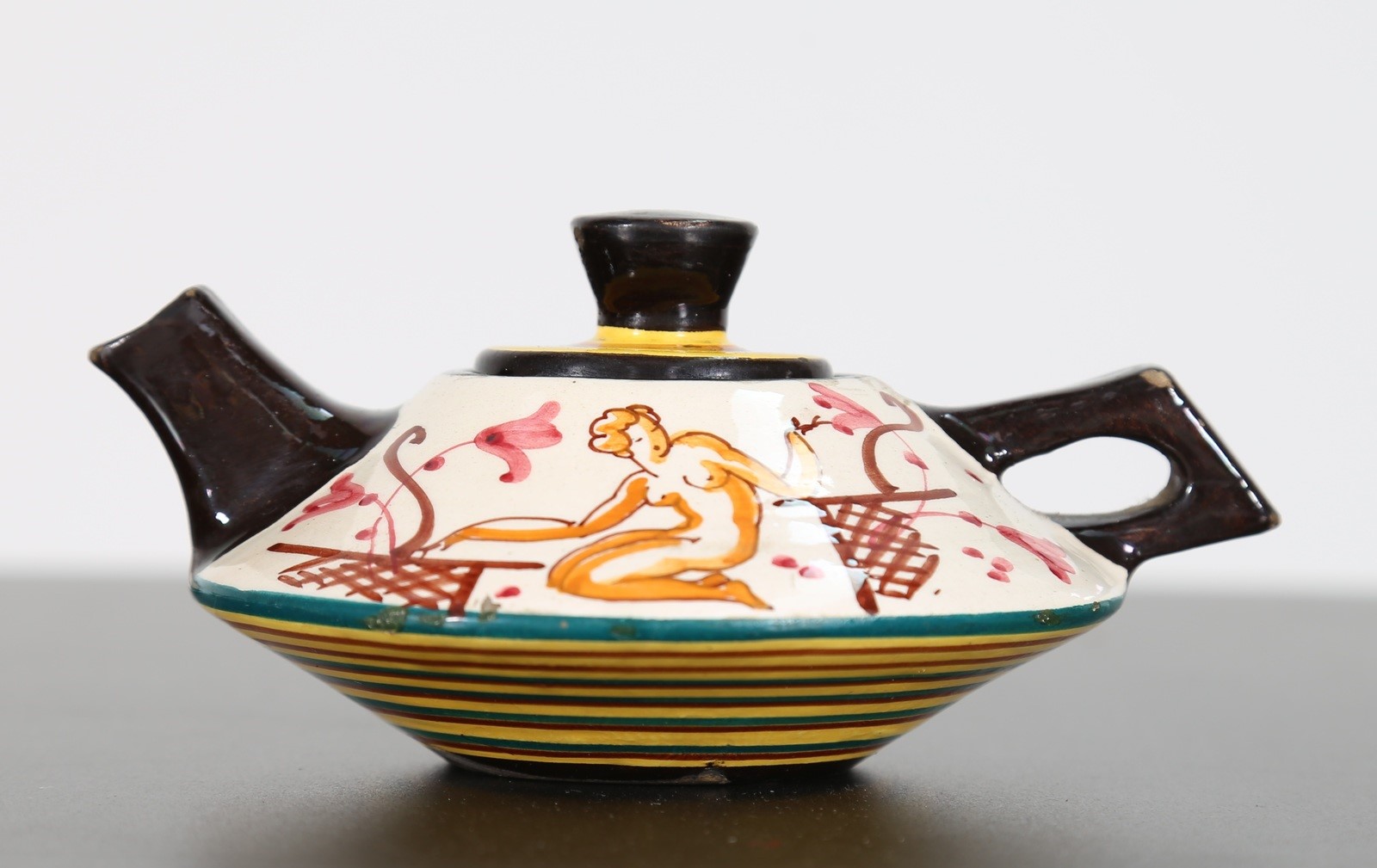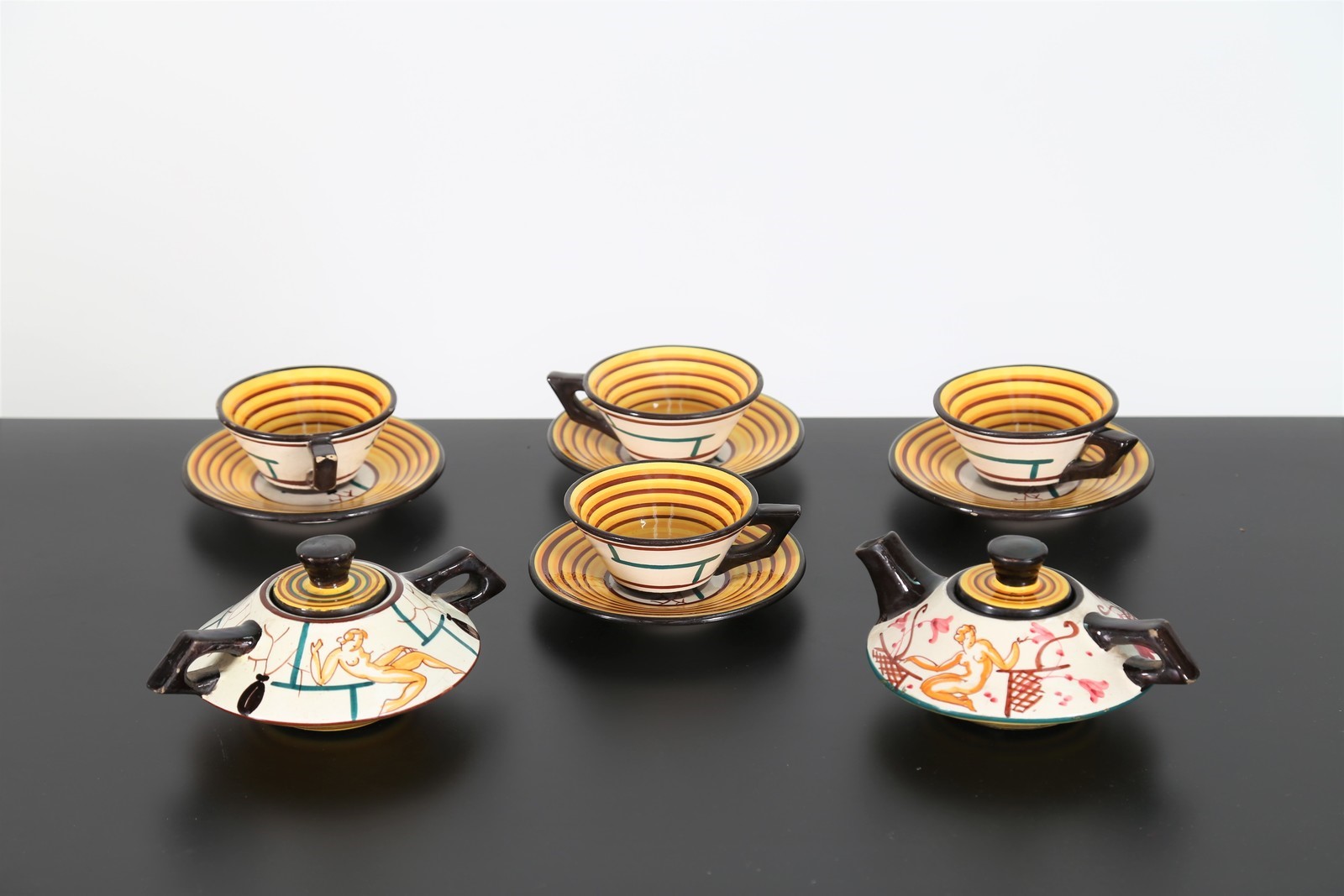 BMC CERAMICHE Quattro tazzine con teiera e zuccheriera in ceramica. . -. ....