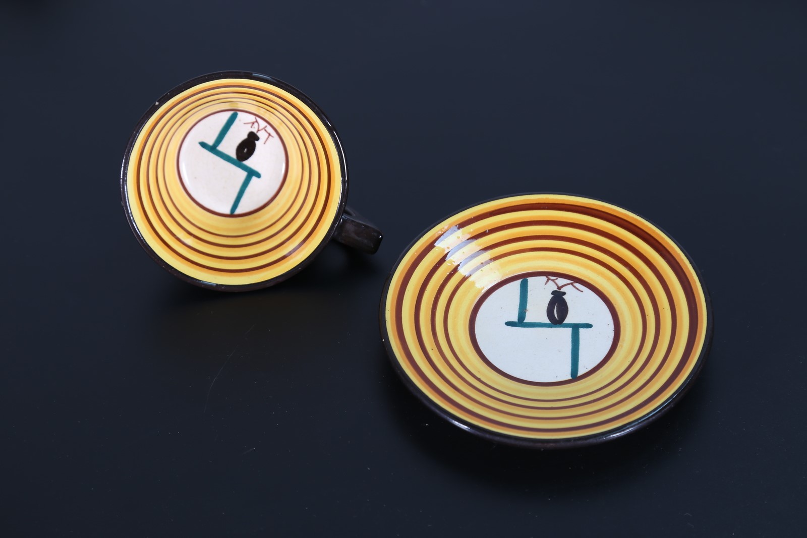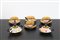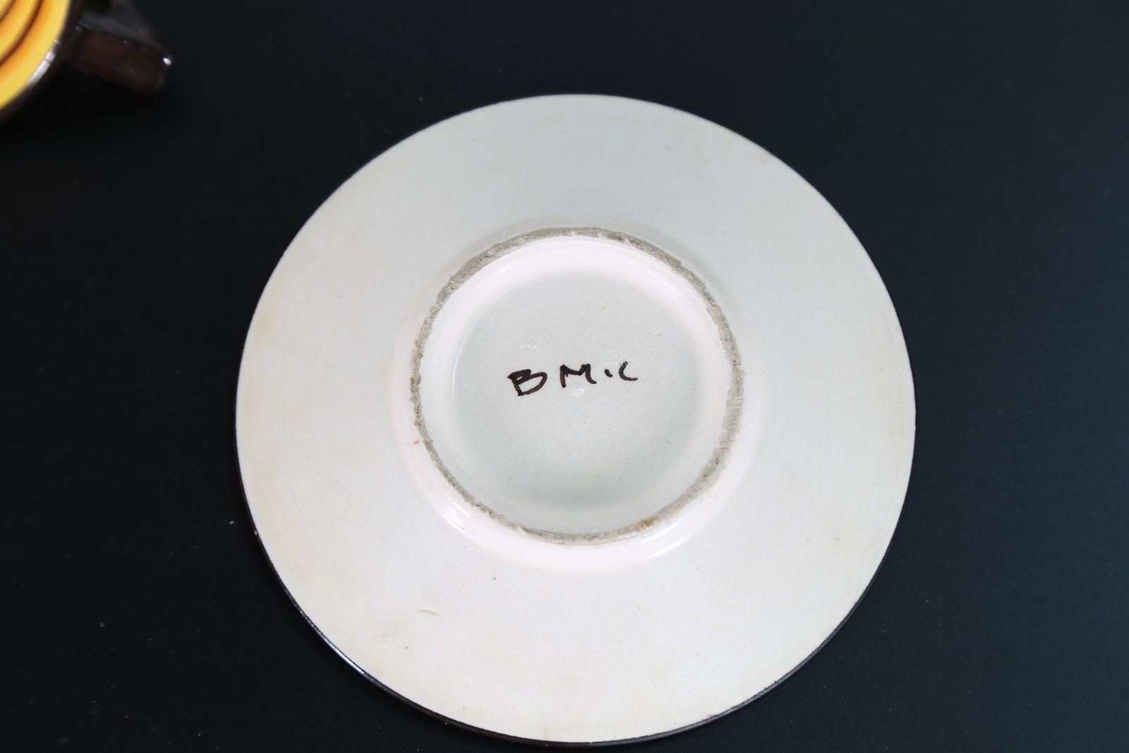 BMC CERAMICHE Quattro tazzine con teiera e zuccheriera in ceramica. . -. . Marchio presente. Misure: Zuccheriera e teiera 7 x 16, piattini 1,5 x 12, tazzine 4 x 10,