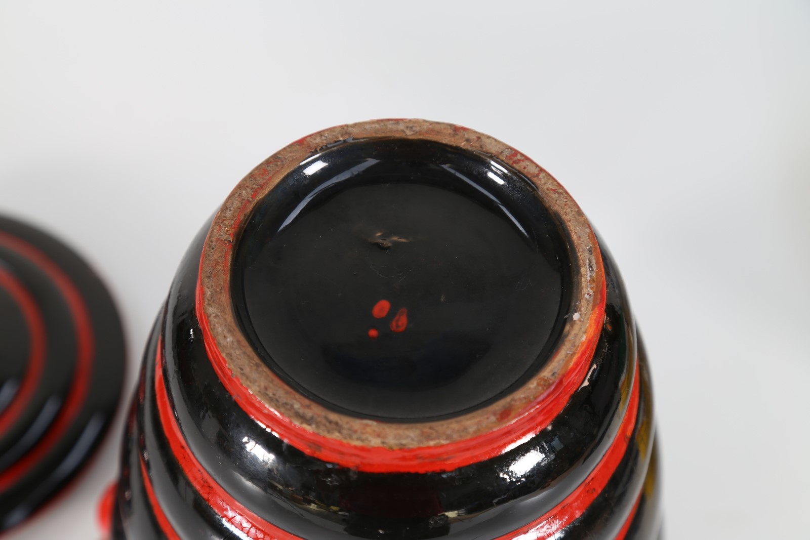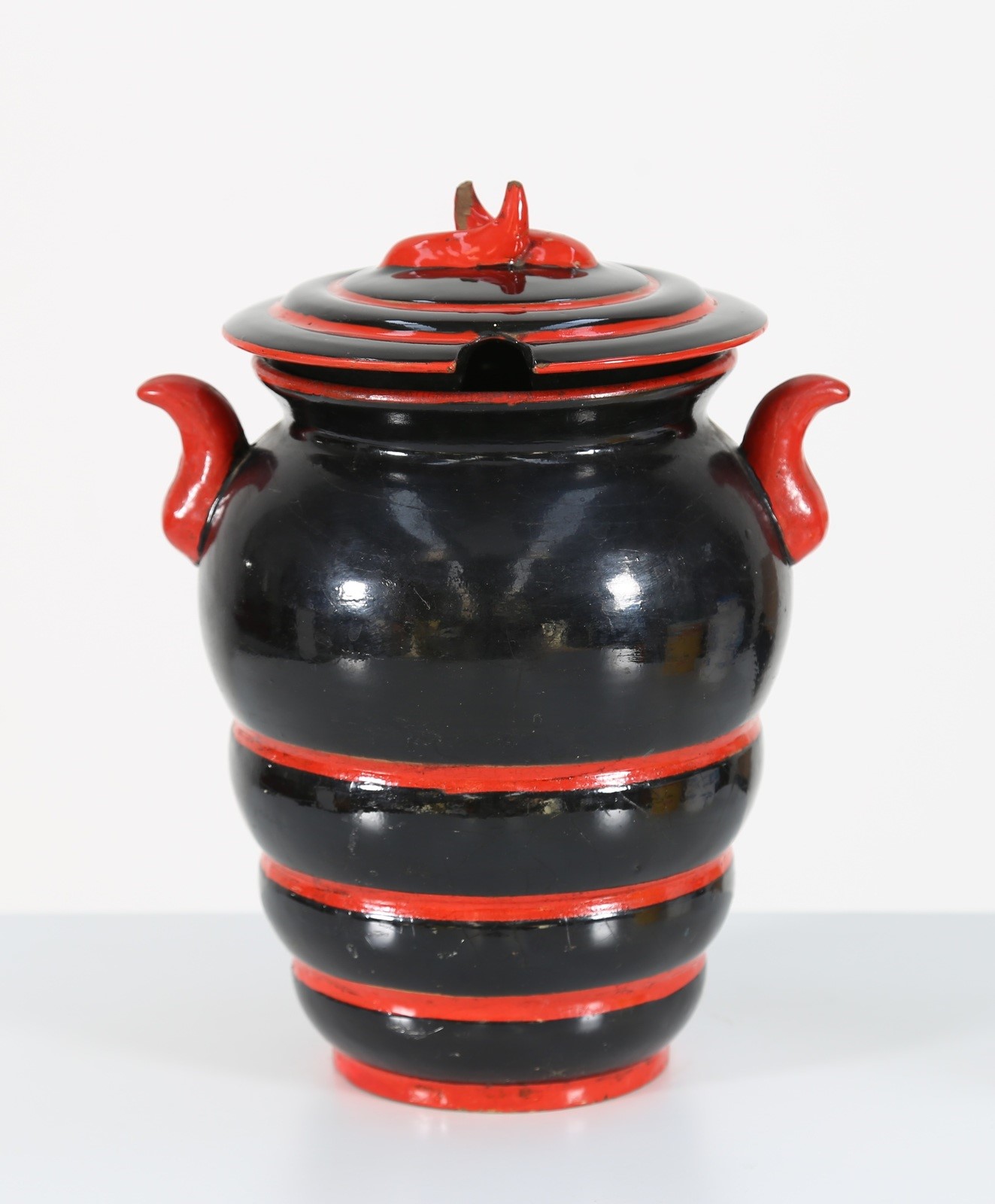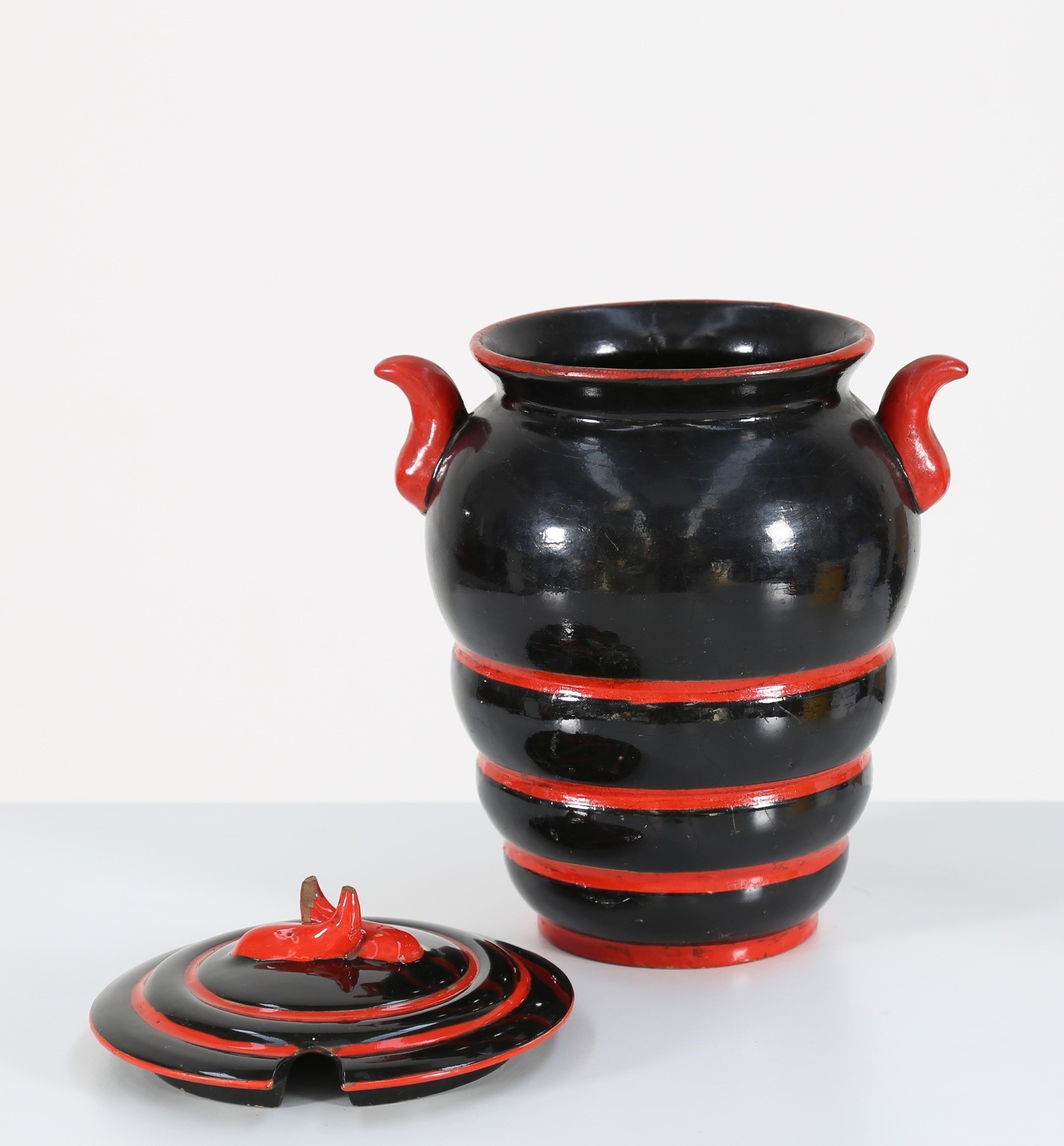 DERUTA Vaso cista con coperchio, anni 30. -. Cm 20,00 x 26,00 x 18,00.