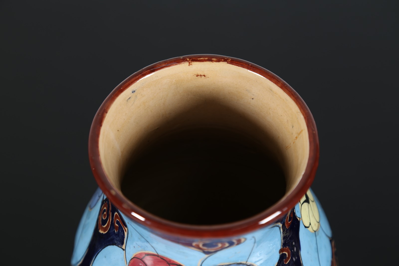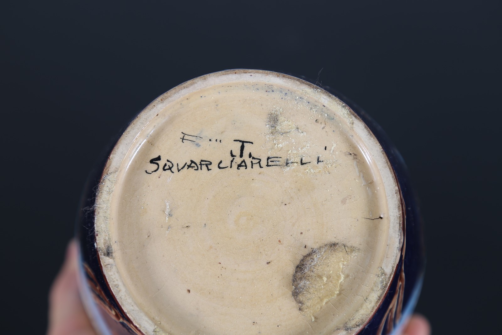 SQUARCIARELLI Vaso in ceramica dipinta, anni'20. -. Cm 15,00 x 26,50 x 15,00. Firma presente