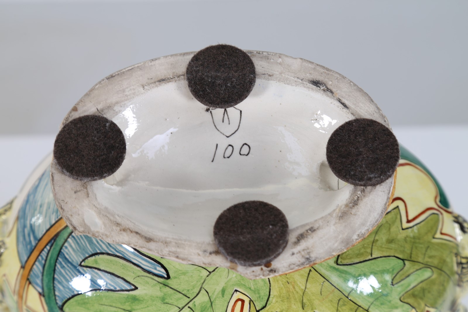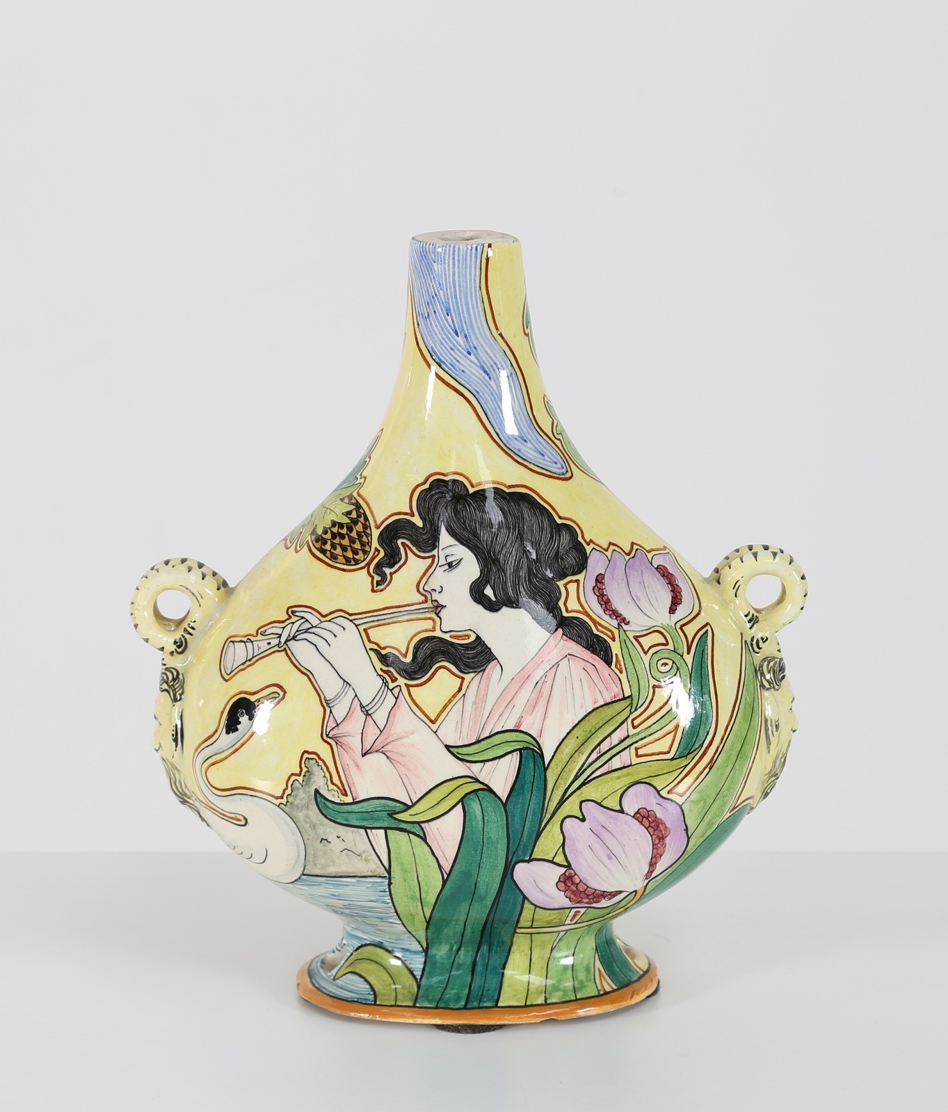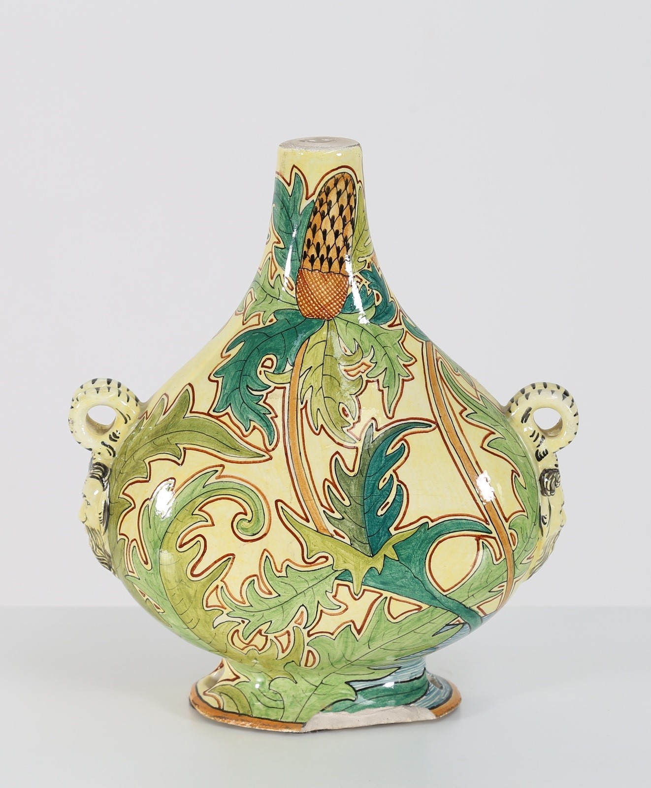 FANTECHI Vaso liberty in ceramica, anni 30. -. Cm 24,50 x 28,00 x 12,00. Marchio presente. Piccola scheggiatura.