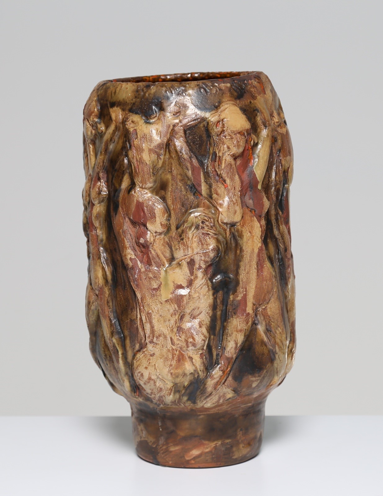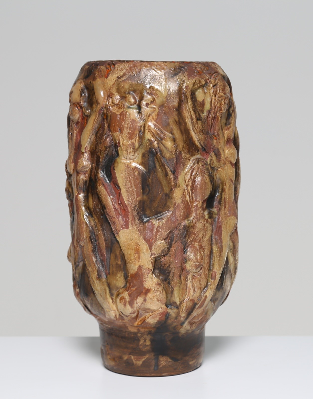 FANCIULLACCI CERAMICHE Vaso in terracotta a gran fuoco con figure intagliate...