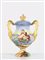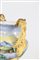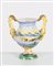 FANTECHI Vaso in ceramica decorata con anse e coperchio. -. Cm 25,00 x 28,00 x 20,00. Marchio presente. Piccole scheggiature.