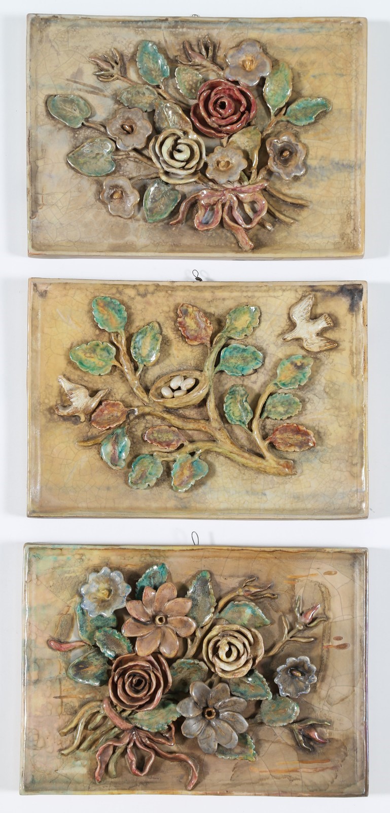 GATTI RICCARDO (1886 - 1972) Tre piastre con fiori in bassorilevo in ceramica...