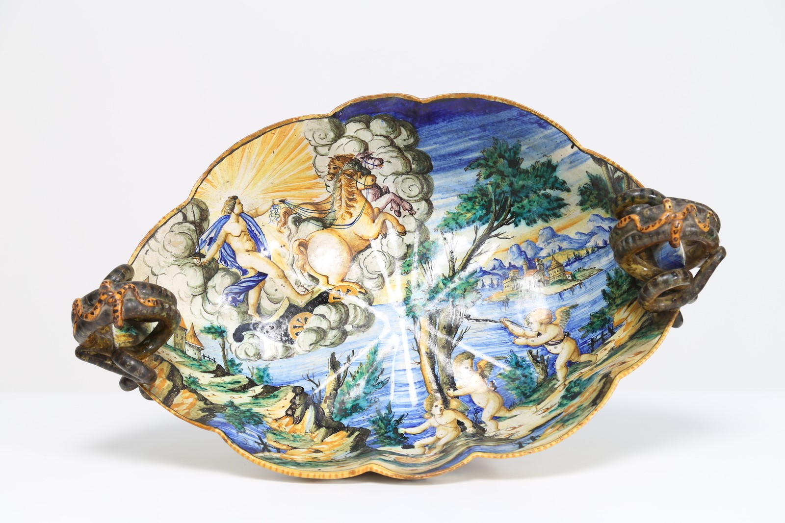 Lotto 82 | CANTAGALLI Grande alzata istoriata, anni 30 Firenze . -. Cm 50,50 x 24,00 x...
