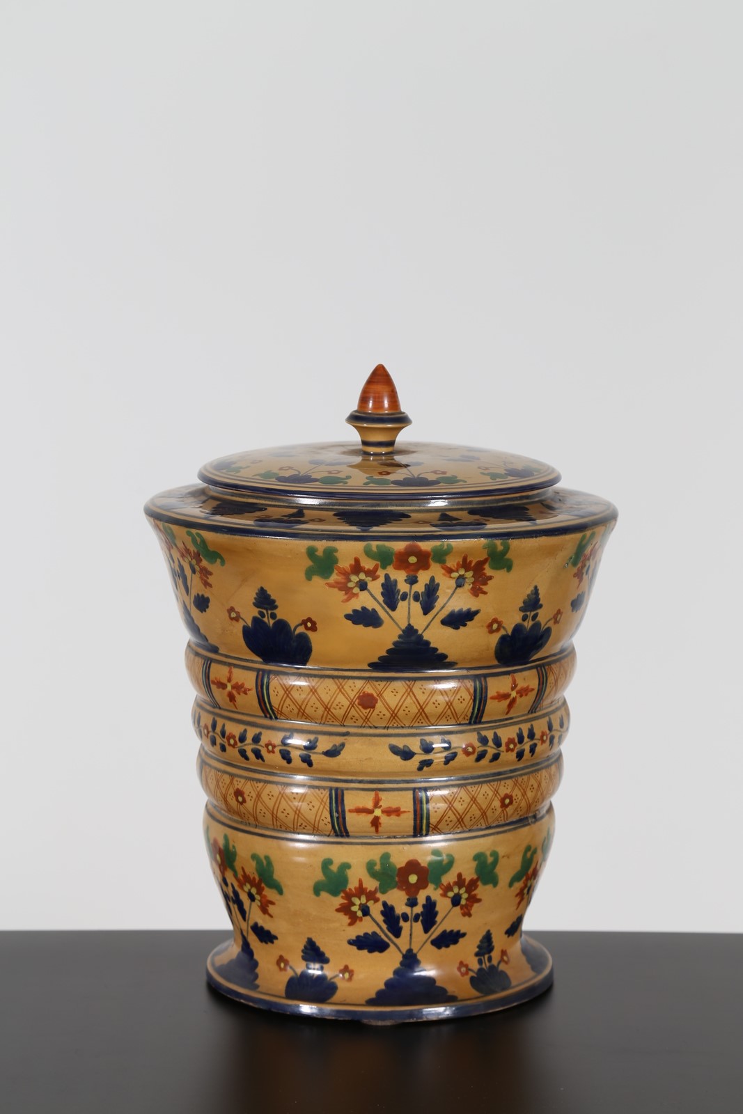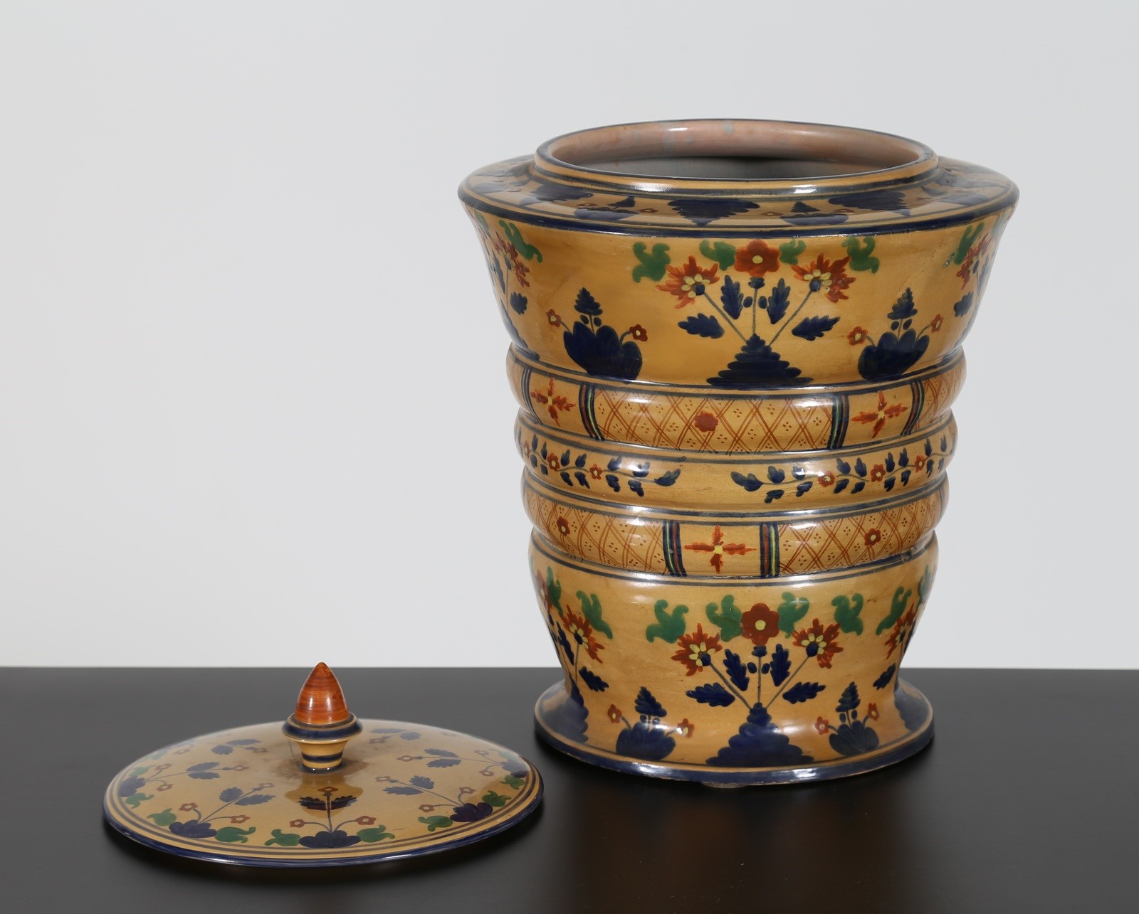 MELANDRI-FOCACCIA Grande vaso con coperchio in ceramica decorata, anni 20. -....