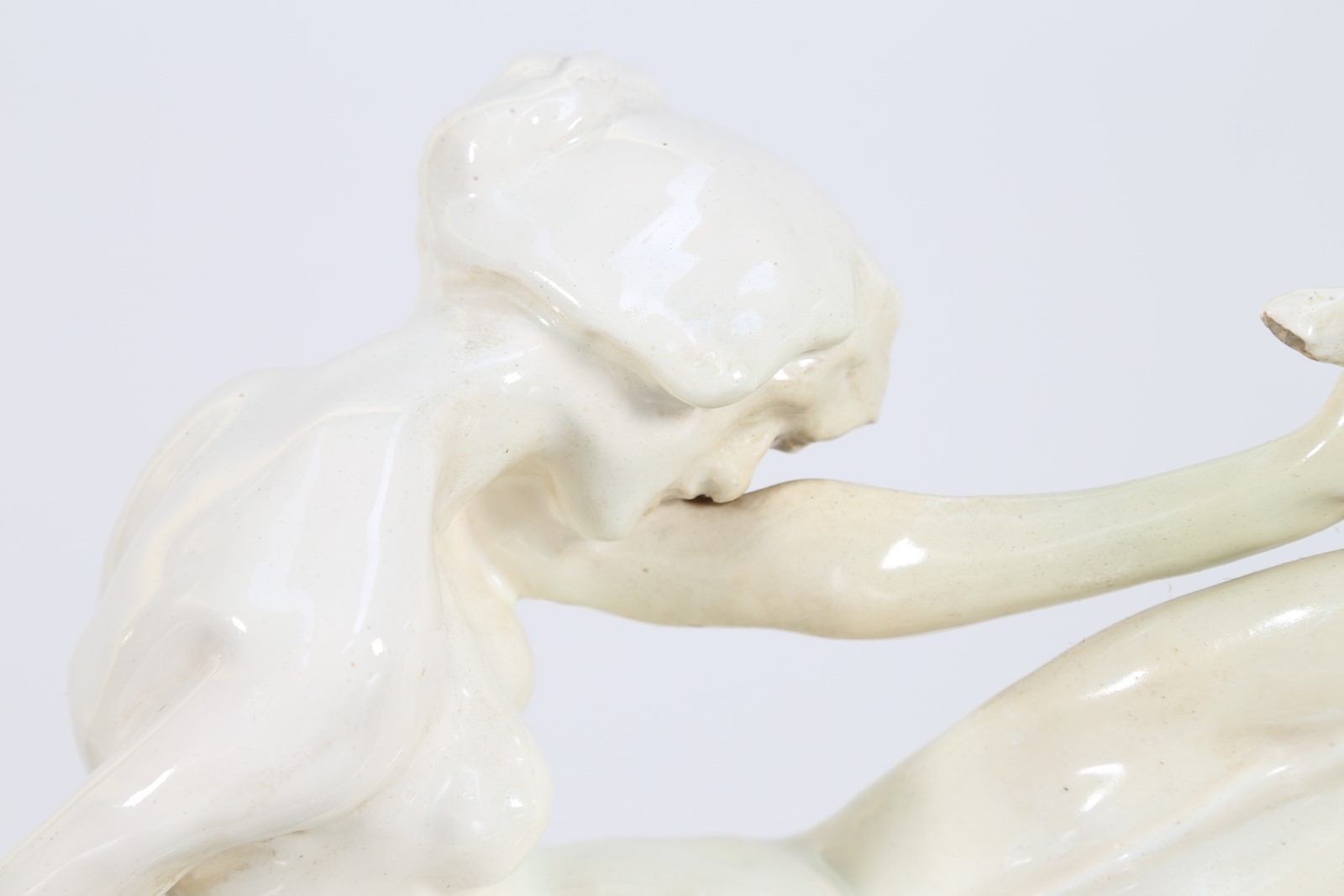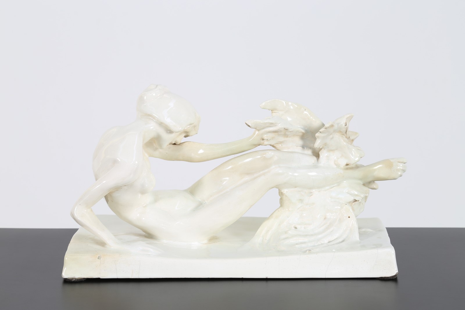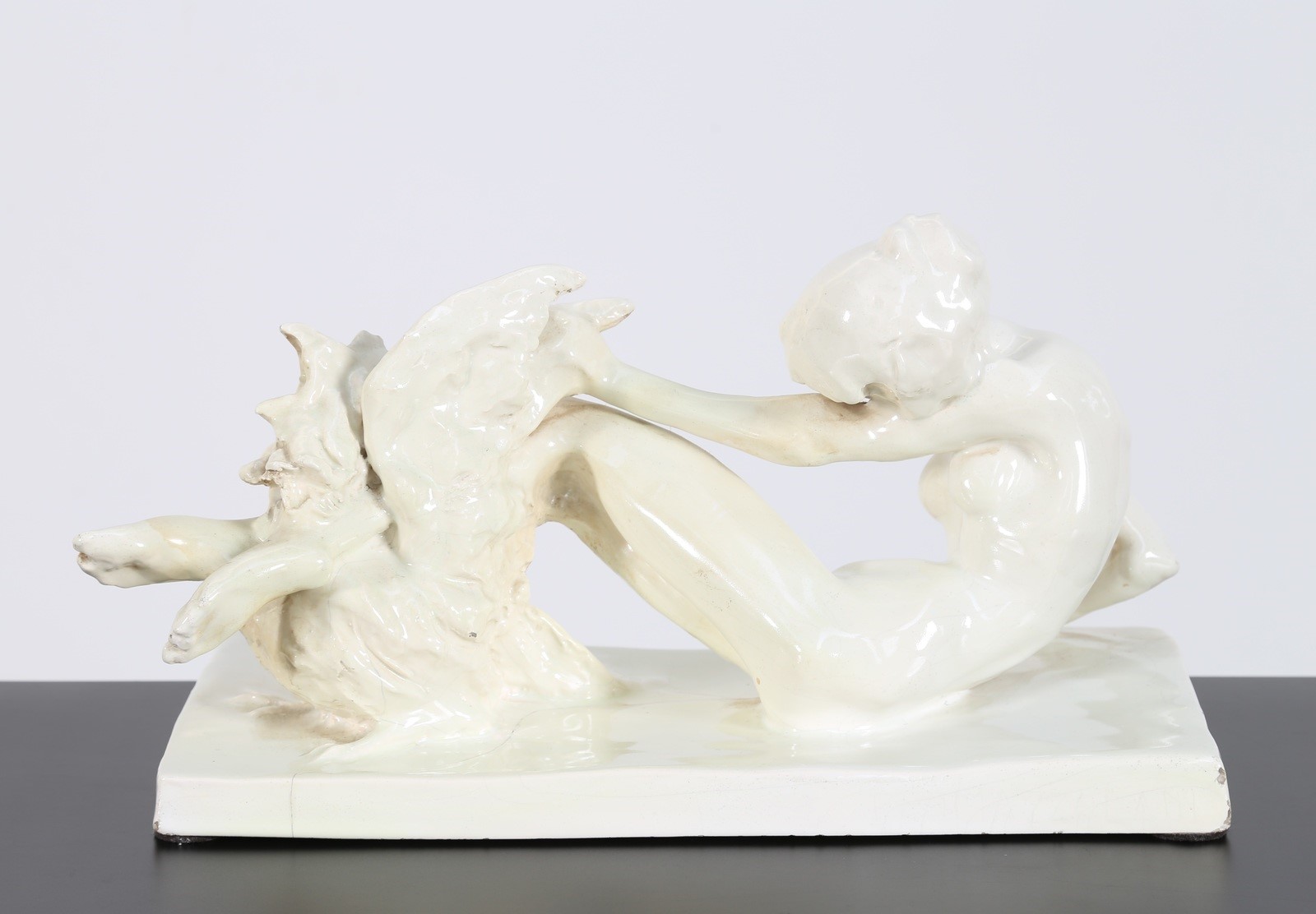 MAZZOLANI ENRICO (1876 - 1968) La penna del gallo. Scultura in ceramica. -....
