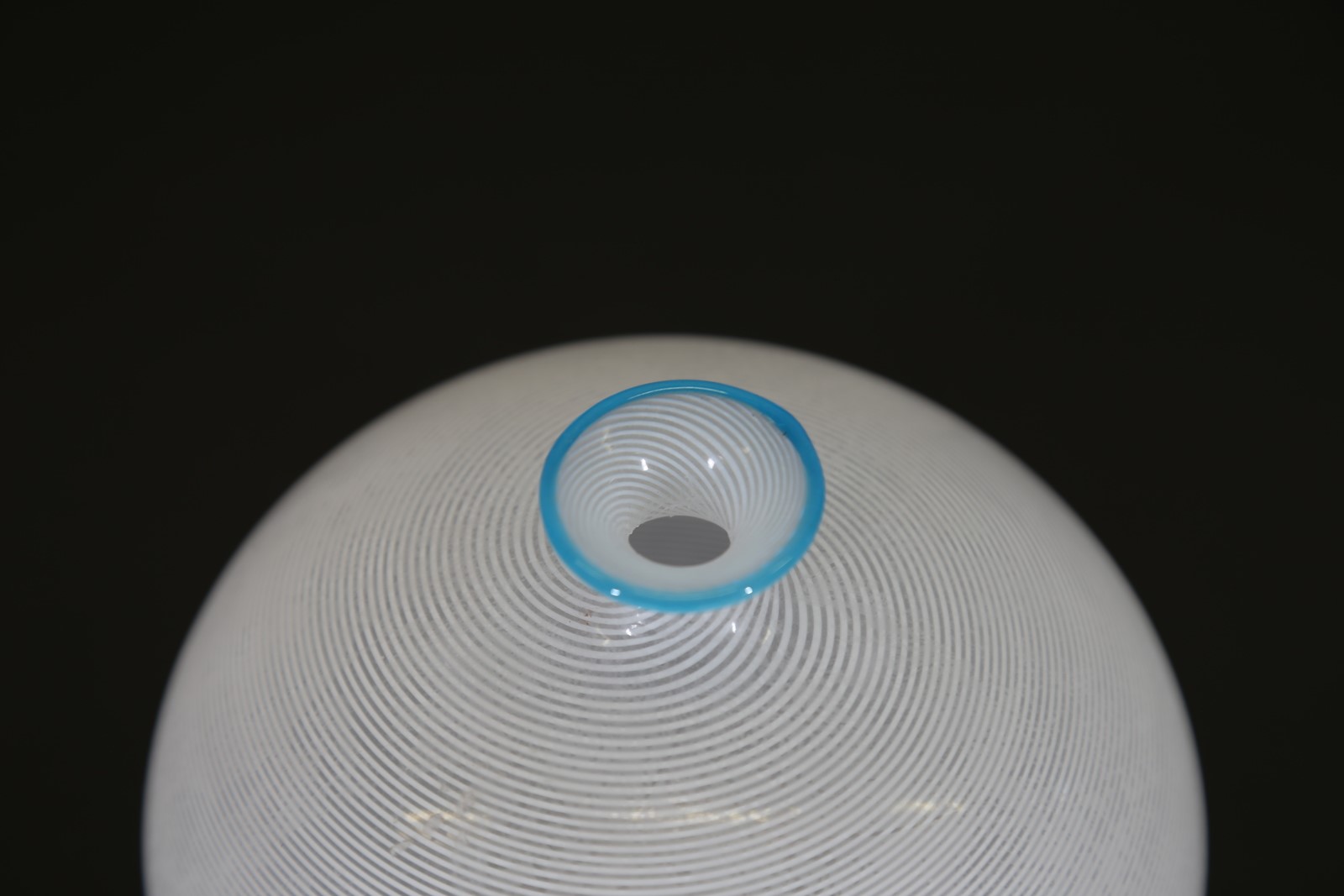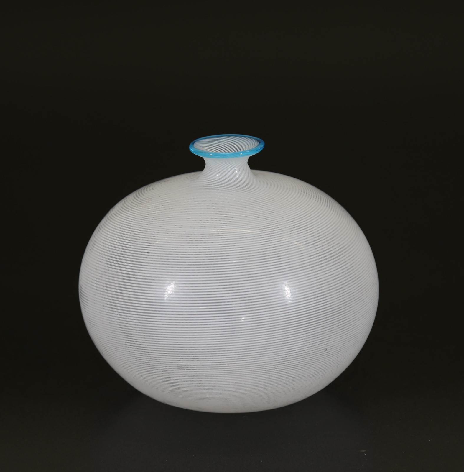 Lotto 163 | BAROVIER & TOSO Vaso a mezza filigrana con bordo in pasta vitrea azzurra,...