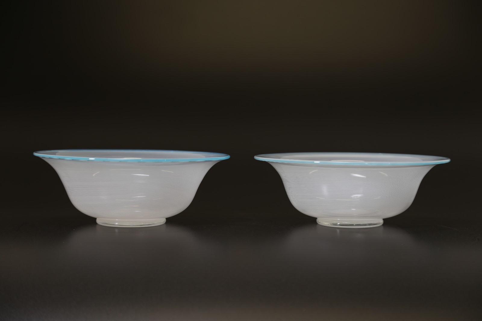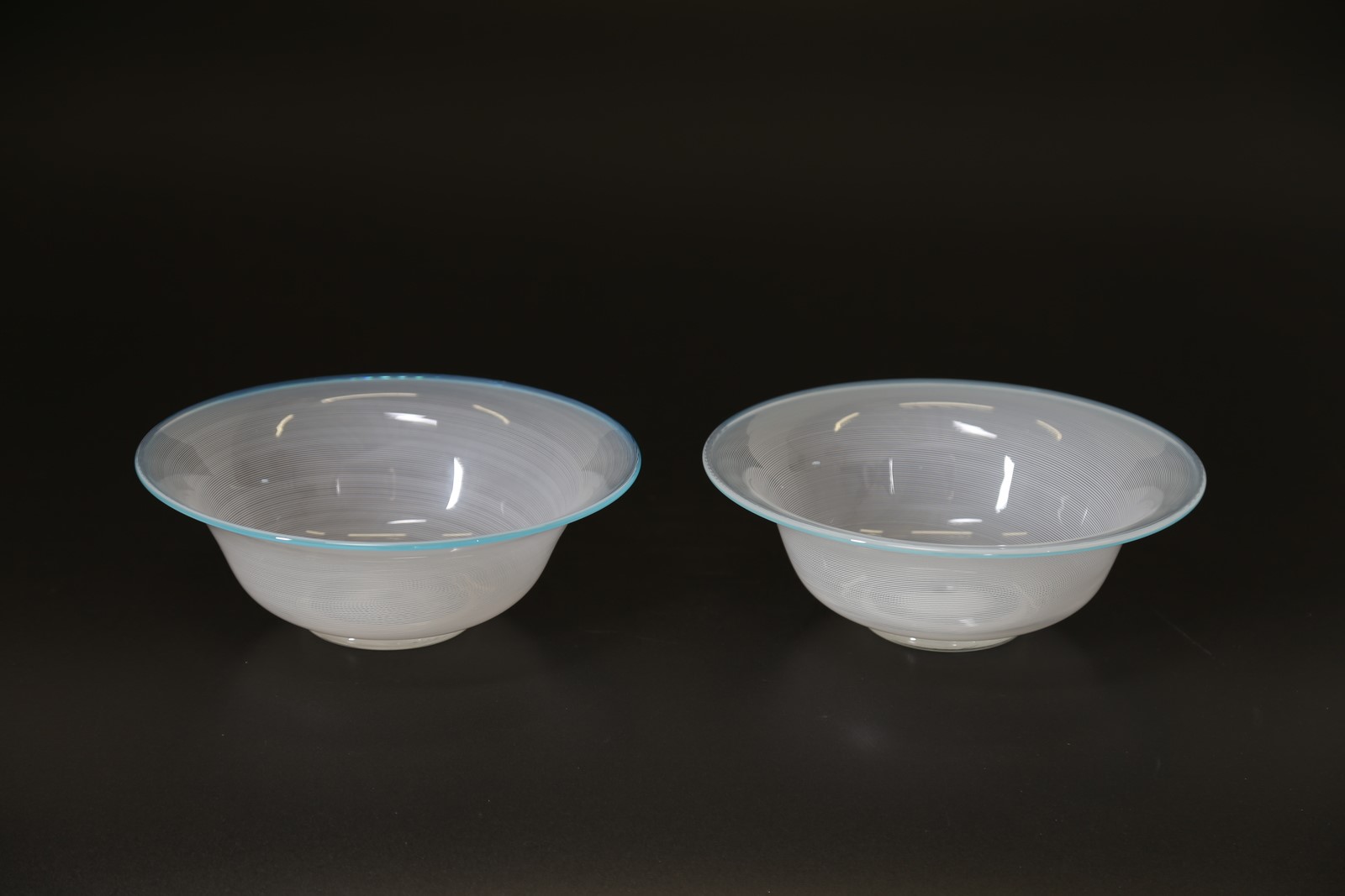Lotto 164 | BAROVIER & TOSO Coppia di ciotole in filigrana con bordo azzurro, anni 70. -....