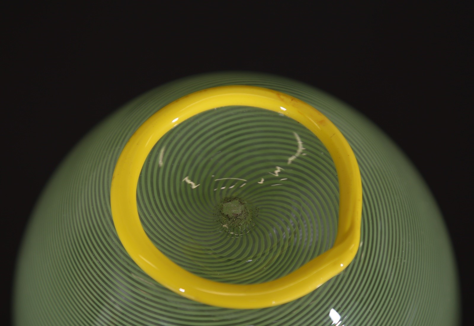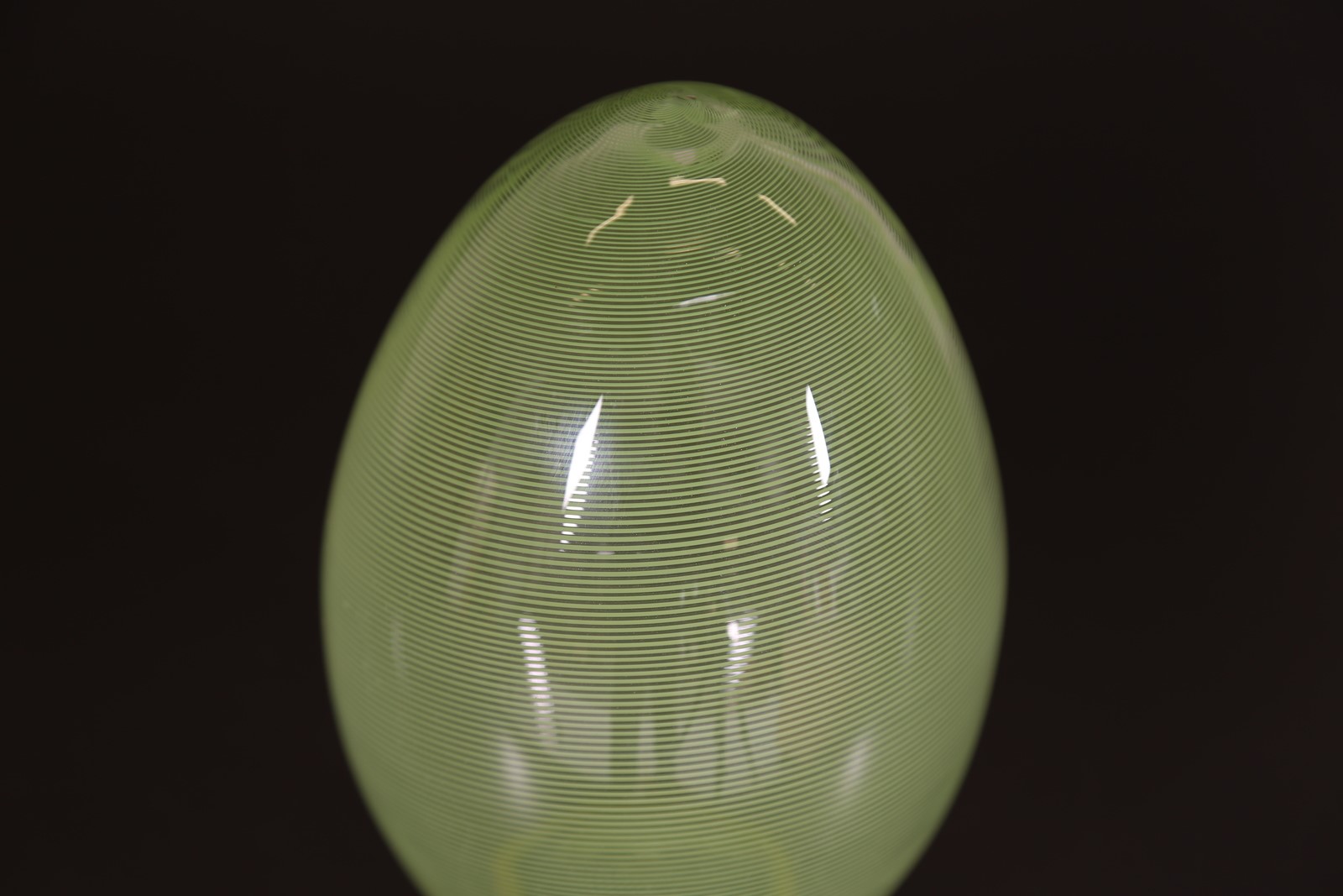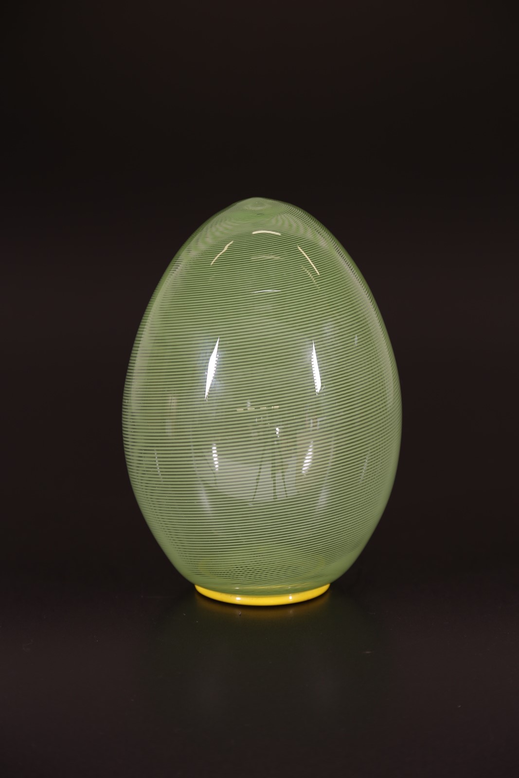 BAROVIER & TOSO Uovo in mezza filigrana e pasta vitrea gialla, anni 70. -. Cm...