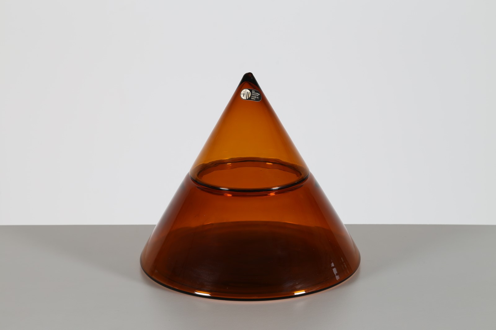 NASON CARLO (n. 1936) Contenitore piramidale in vetro ambra, per A V Mazzega,...
